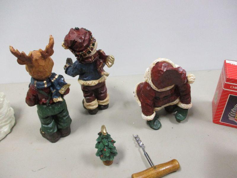 Christmas tree wine stopper and corkscrew and Santa wine holder