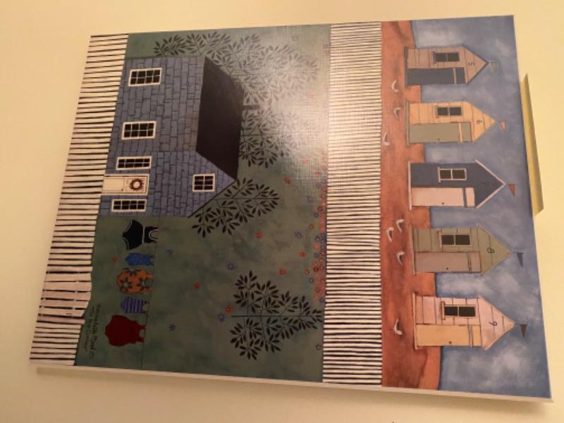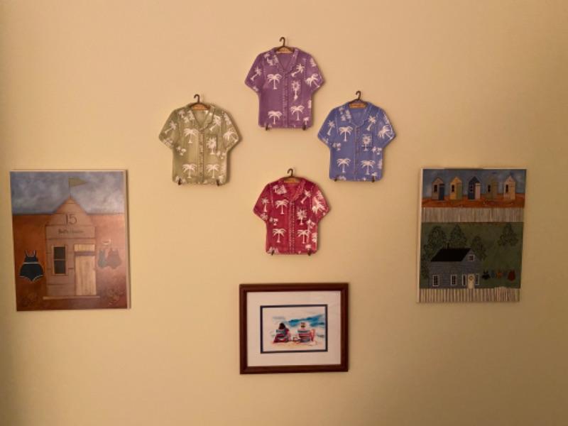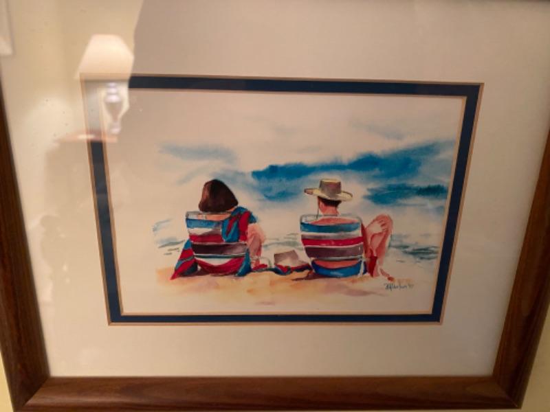 Set of 4 Ceramic Shirt Wall Art 8” x 9” with Signed watercolor of couple on beach by Roberson “˜97 measures 11” x 9”