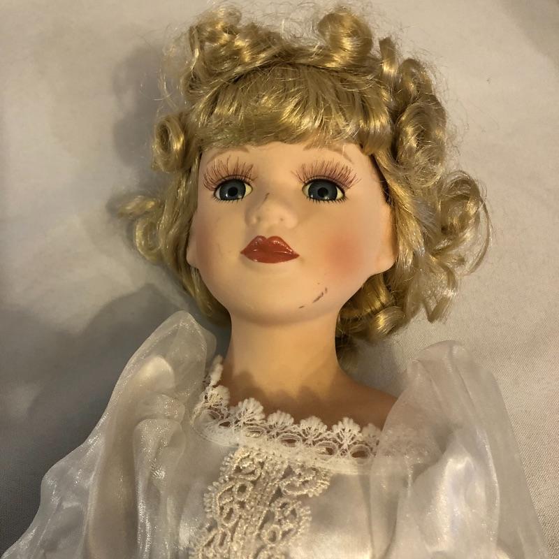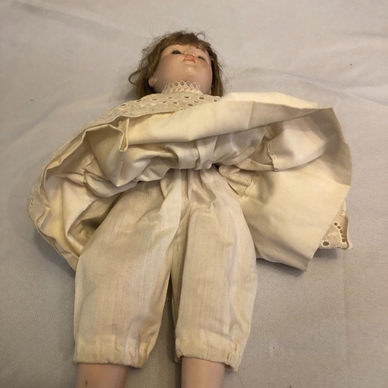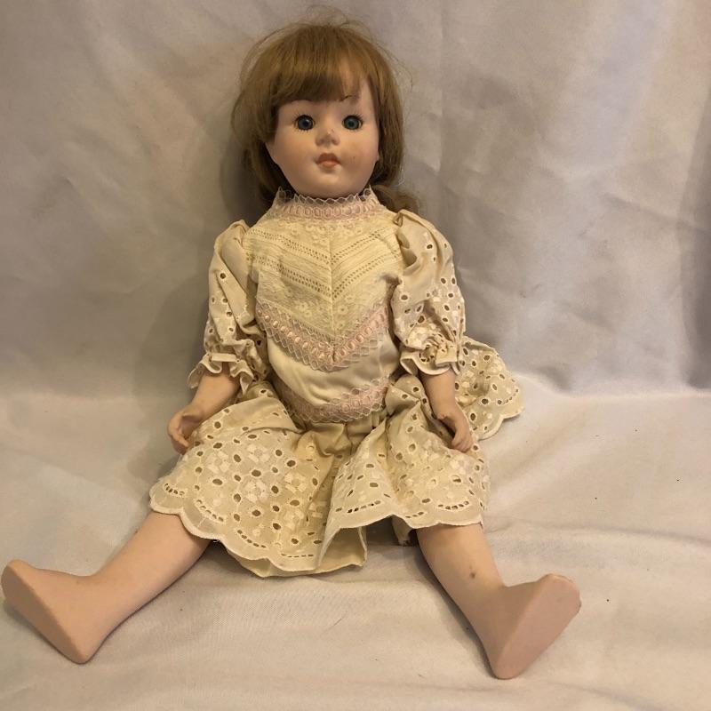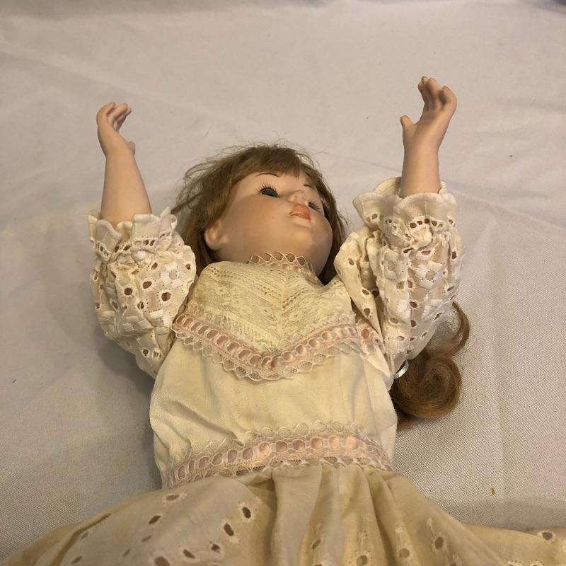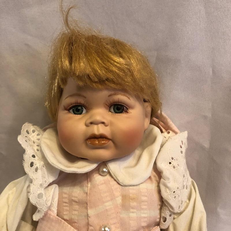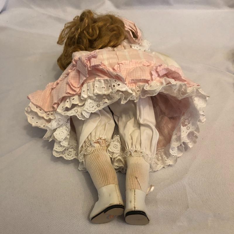This lot includes five porcelain dolls-four girls and one boy. The boy dressed in brown has moveable joints -wrists, elbows, shoulders, legs, knees and neck. He is 26.5” tall and dressed in a corduroy outfit. The doll in a wedding dress is on a stand and is approximately 18” tall. The doll in a floral red dress with red leather shoes is 17.5” tall. She is a mix of porcelain and cloth. The doll in the pink dress is 16” tall and a mix of porcelain and cloth. The last doll is all porcelain with moveable arms, legs and head. She is 18” tall. Shipping Available.