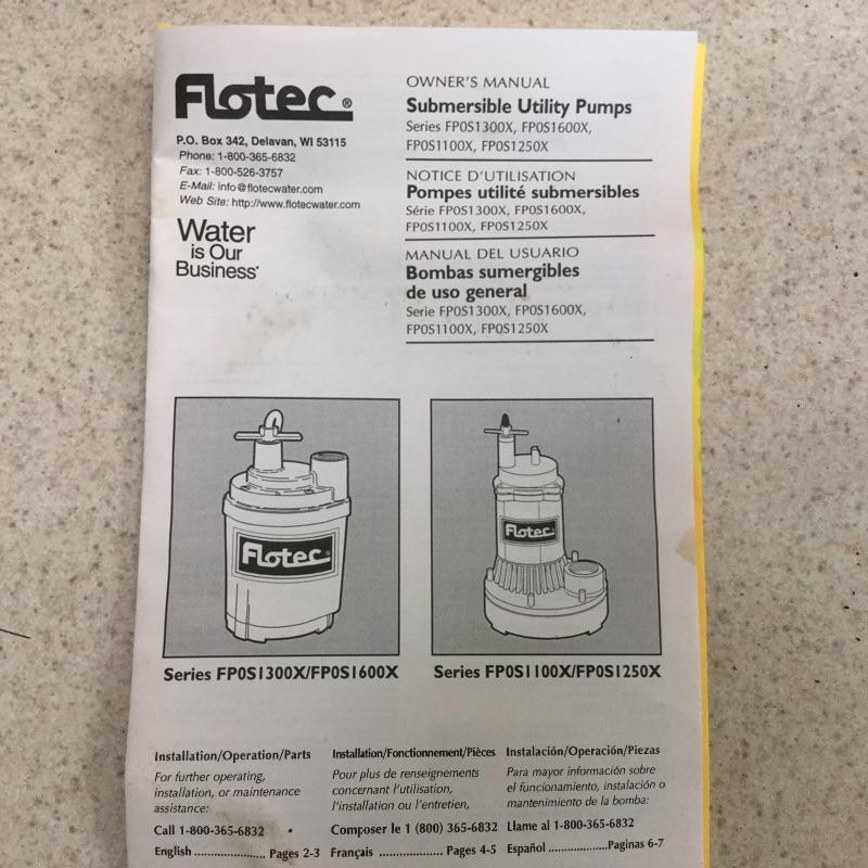 Flotec Brand Submersible Utility Pump Series FPOS1250X, Lot includes Owner's Manuel and original box. Made in the USA. Local pick up only.