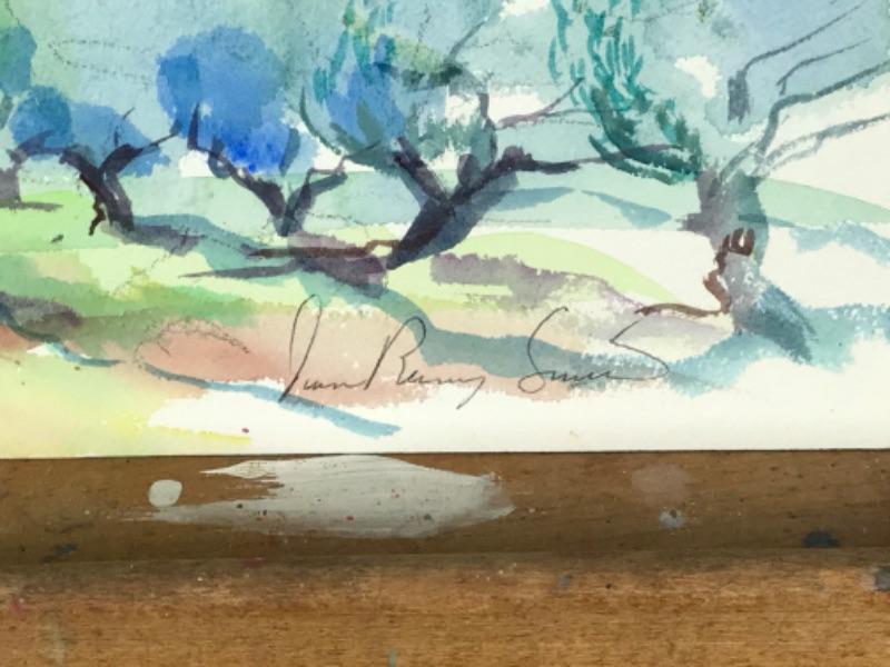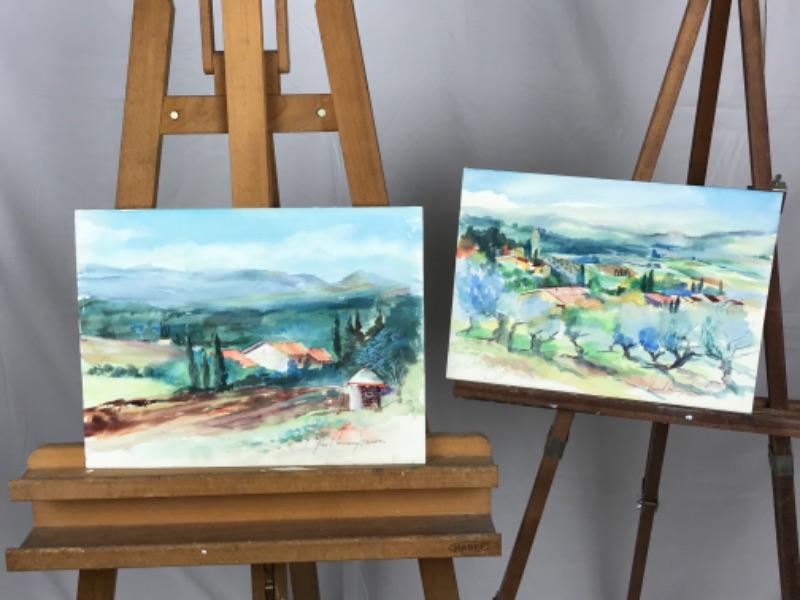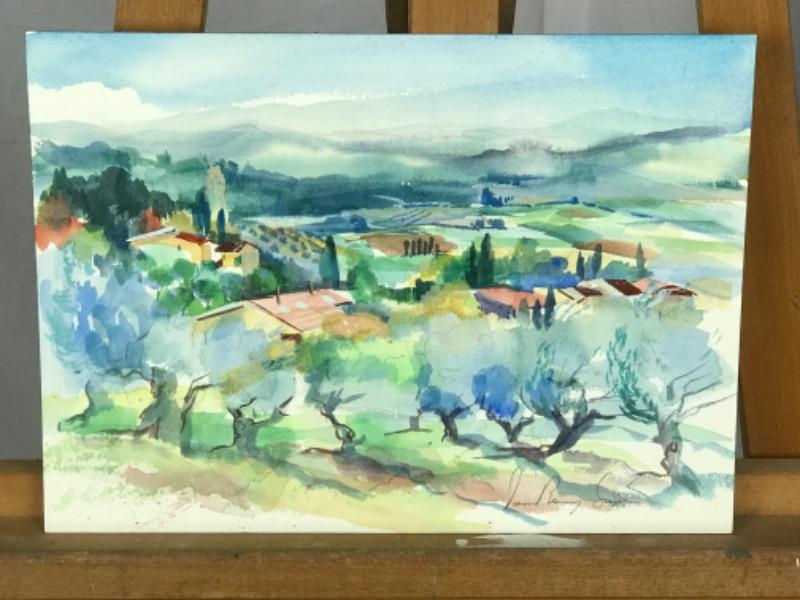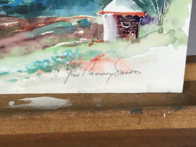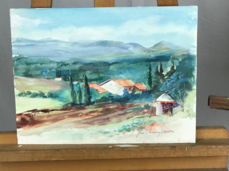 Pair of Jean Ranney Smith signed original watercolors “Landscape Scenery” measures 16”x12”, “Mountain TownScenery” measures 14”x10”