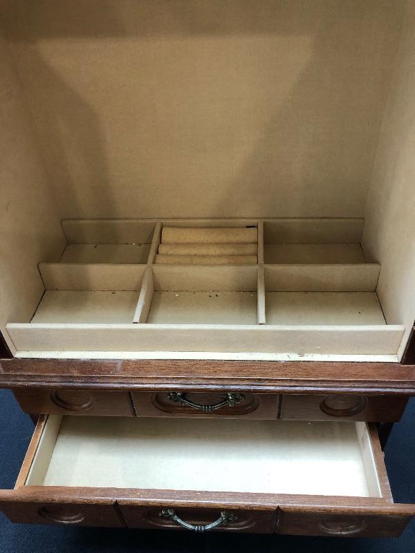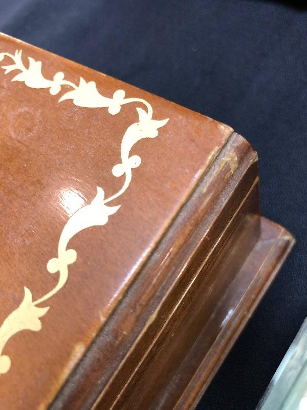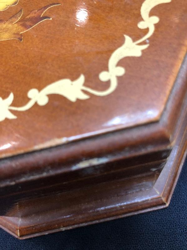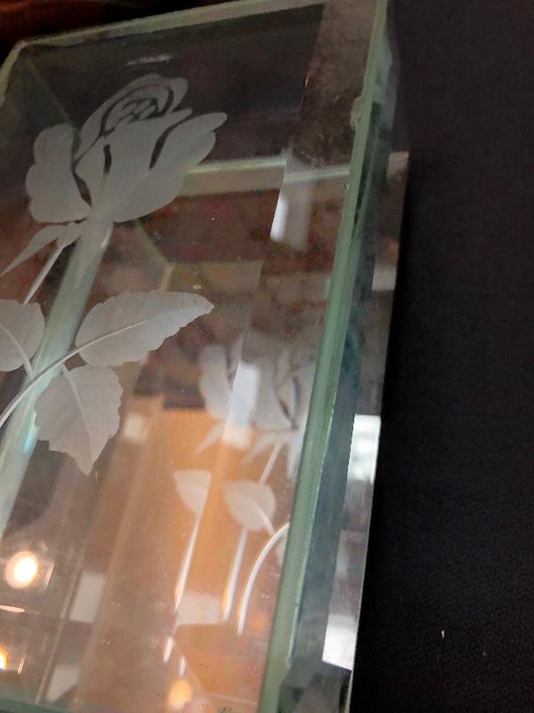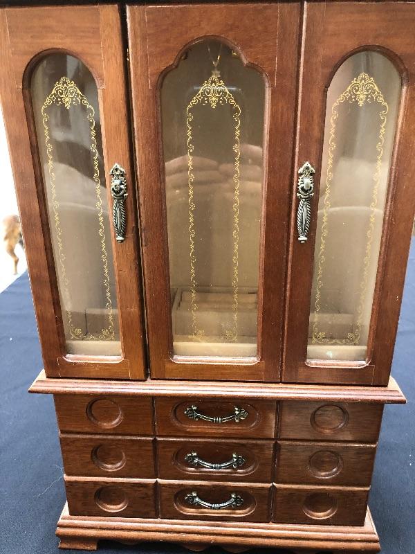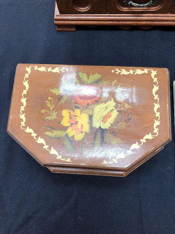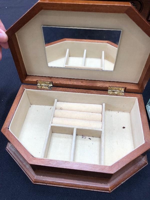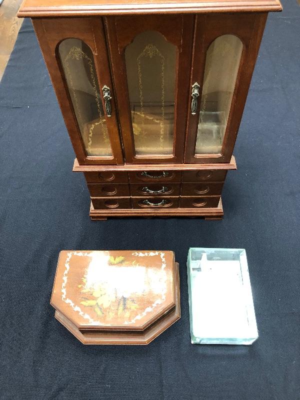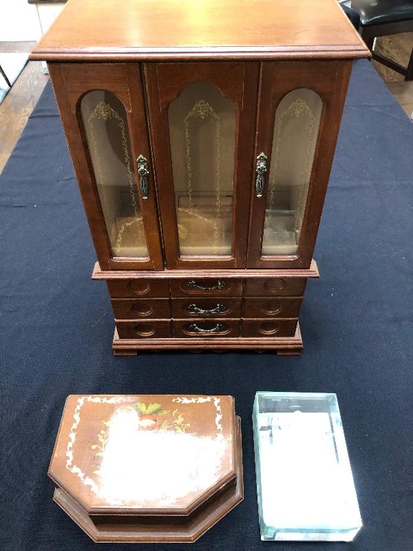 3 jewelry boxes - 1 large wood, 1 italian w/inlay, and one glass. Please see pictures for condition