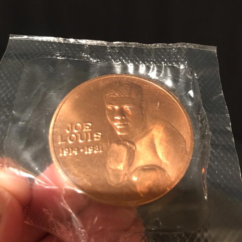 Joe Louis, Boxer collector medal is still in wrapper. Front says his name with the dates "1914-1981" and the back says "World Heavyweight Boxing Champion 1937-1948" The medal is likely made of bronze Bronze and measures 1.5” diameter. Shipping available.