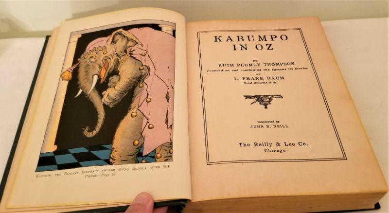 Another scarce book from the OZ series - 1922 edition of Kabumpo in Oz (I think it's a First Edition) - no dustjacket - by Ruth Plumly Thompson, illustrated by Jno. R. Neill - color plates, very clean. Name written on flyleaf.