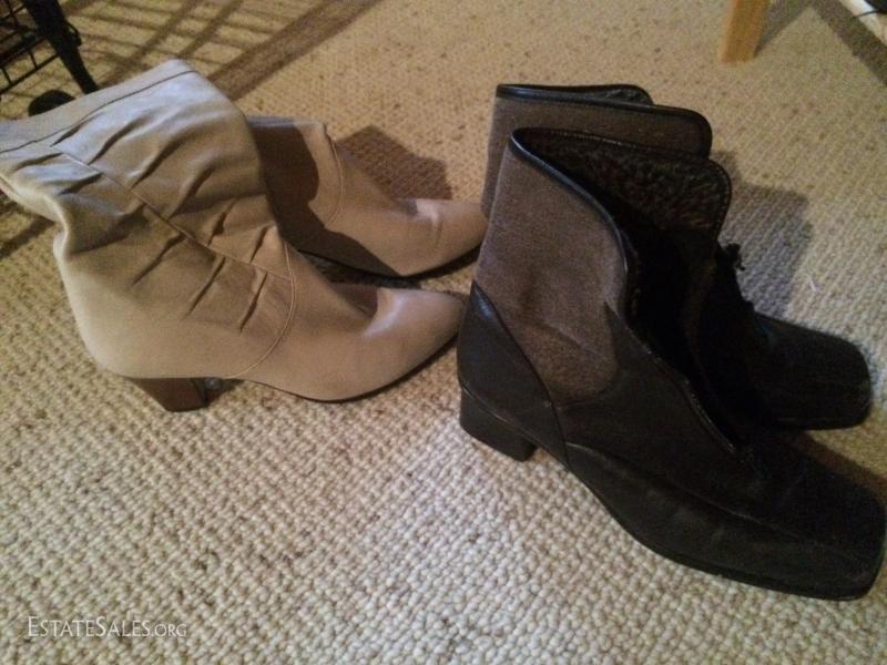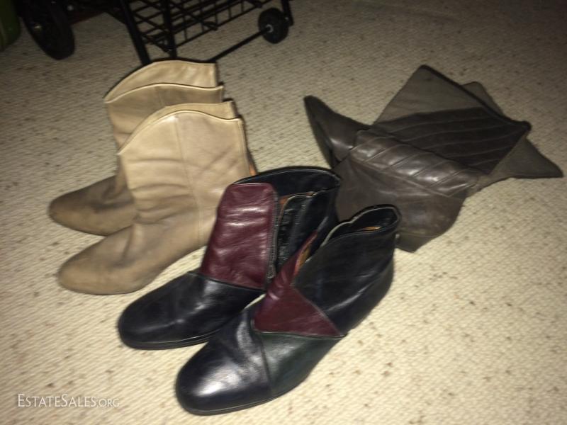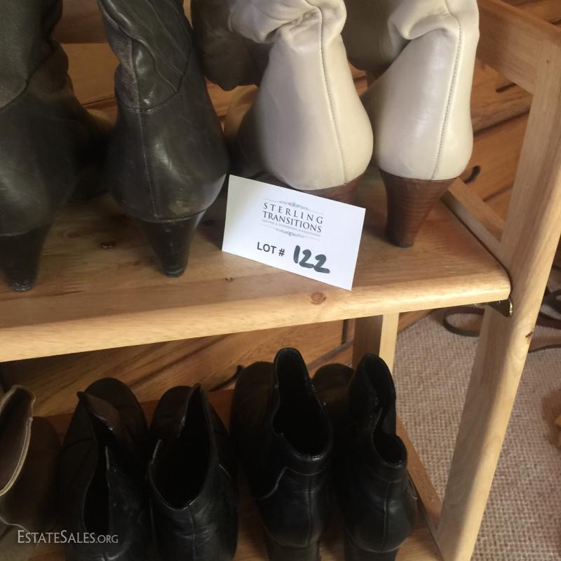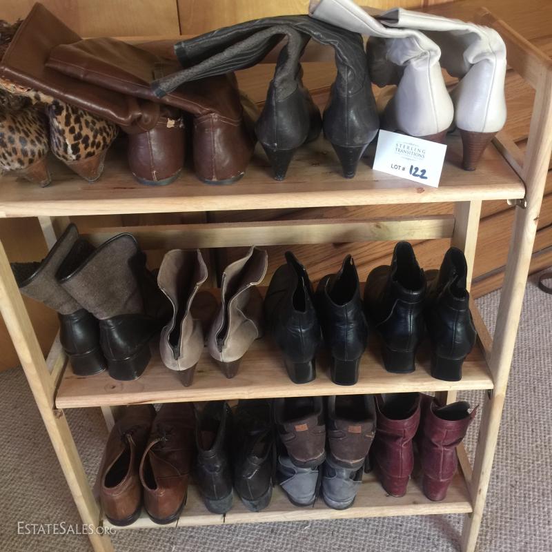 Ladies boots. Sizes 6 1/2 to 8 1/2 Leather and man made materials 13 pairs with collapsible shelf included.