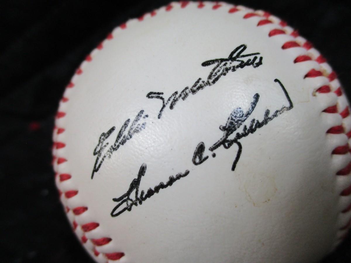 Lot 122 - Vintage MacGregor Goldsmith Snare Model Baseball Glove Mitt XSN & Baseball with Autographs