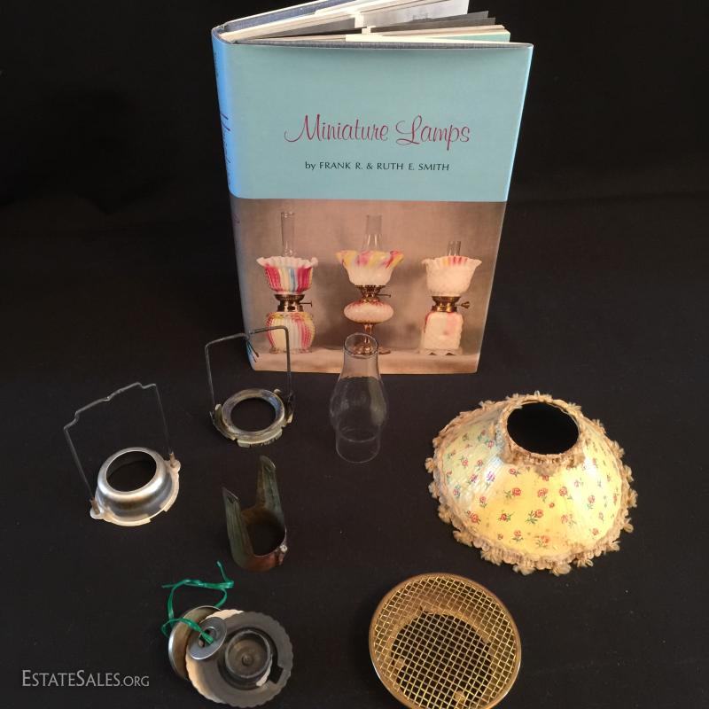 Lot 122 - Miniature Lamp Parts, Shades and Book