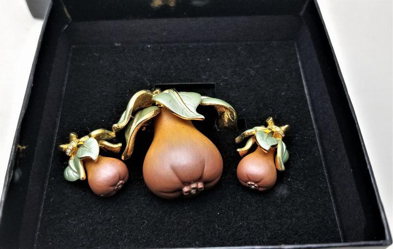 Lot #122 Never Removed from Box - Joan Rivers Brooch & Clip earring set - PEARS