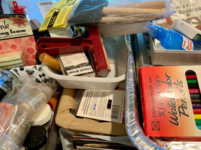 LOT 122  OVER 200 STAMP BLOCKS PAPERS TOOLS RIBBON CRAFTS HOBBY SCRAPBOOKING