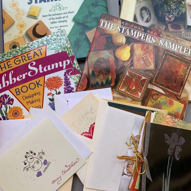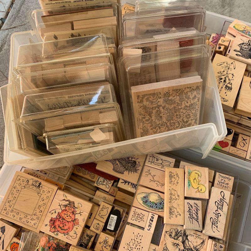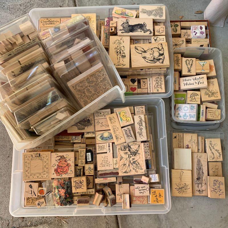 HUGE lot of card/scrapbooking stamps, every holiday & theme you can imagine. Mottos, flowers, insects, trees, plants, animals, fairies, birds, angels, children, women, art, all over prints, sports, and of course holidays!! All sizes, some never opened. Lots of specialty papers for card making. Ribbon, glitter, colors, books, tools, literally tubs full!