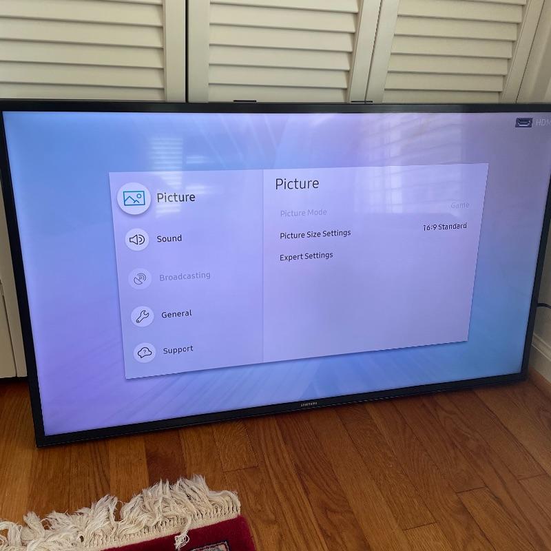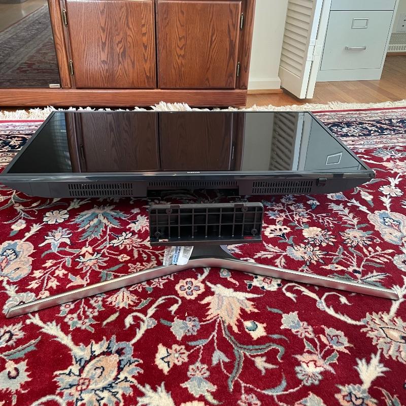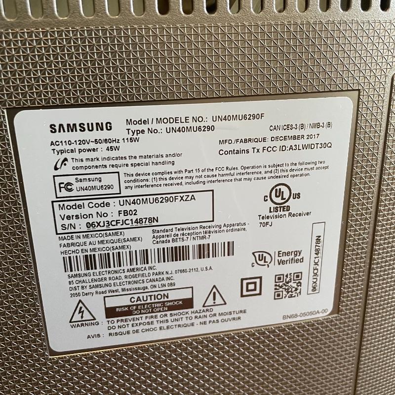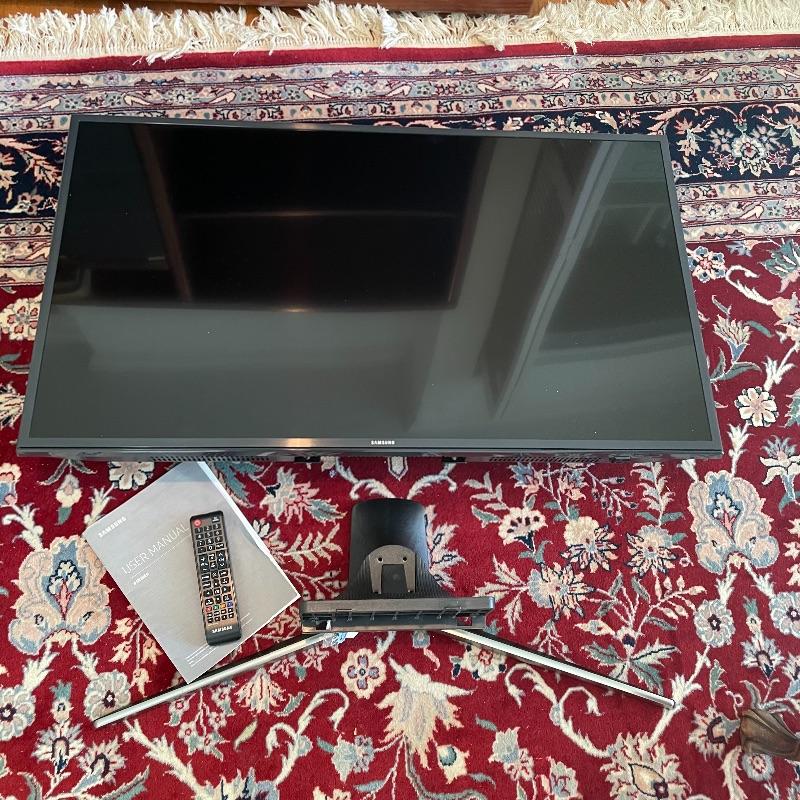 Nice 40” Samsung TV with remote, wall mount and stand. TV powered on when prompted. Information on the backside states it was made in 2017 and is up to date on the latest IT USB and HDMI plug ins. See images. Please bring a drill with large Phillips head bit to remove wall mount. Large screws are tightly secured in studs. Local pick up only.