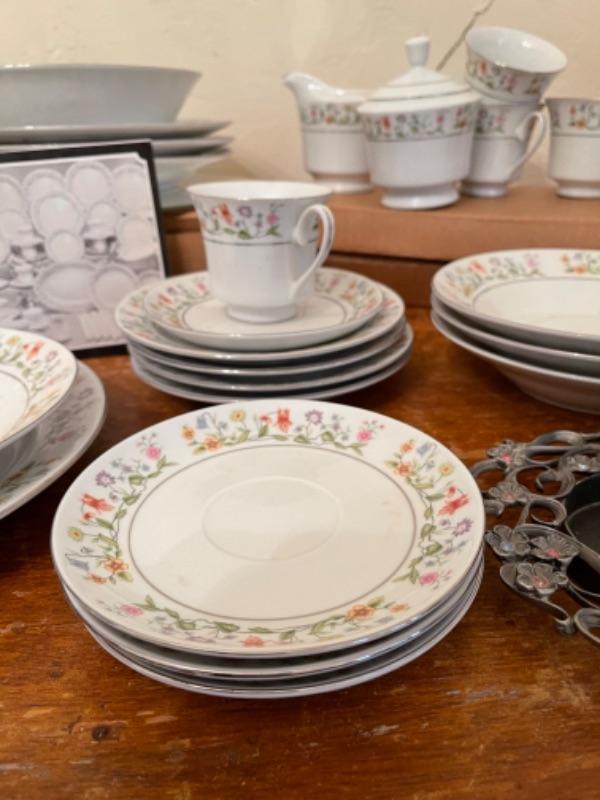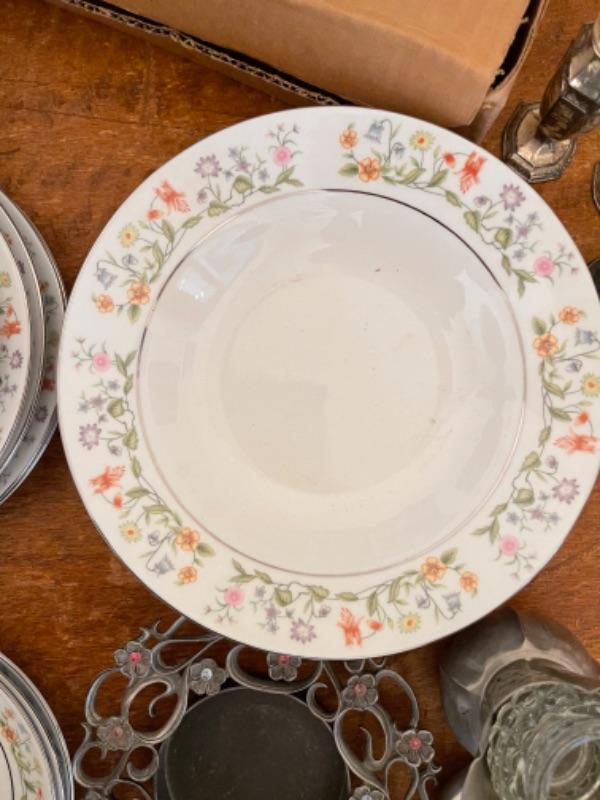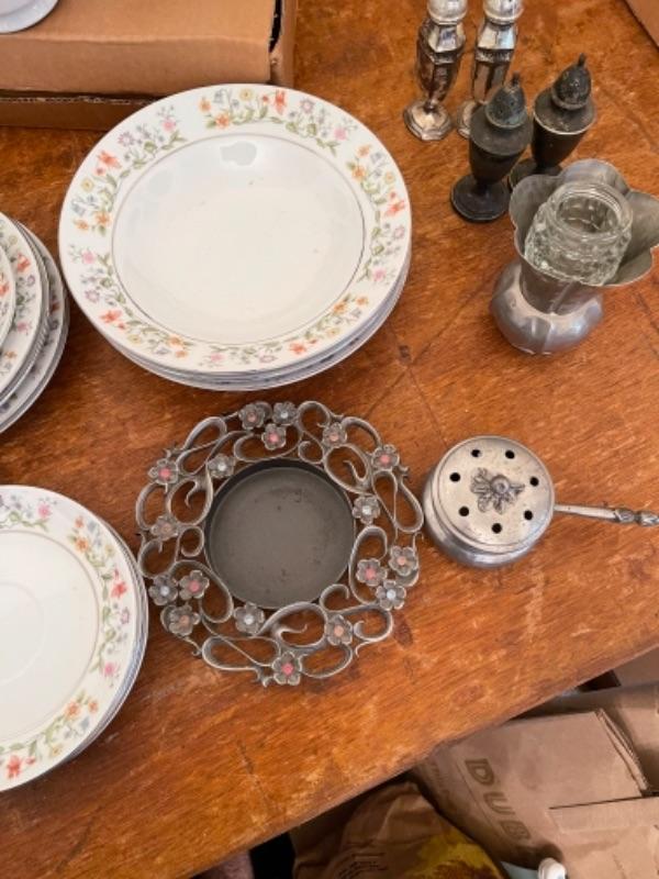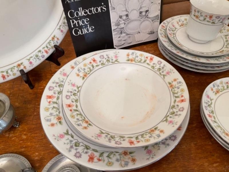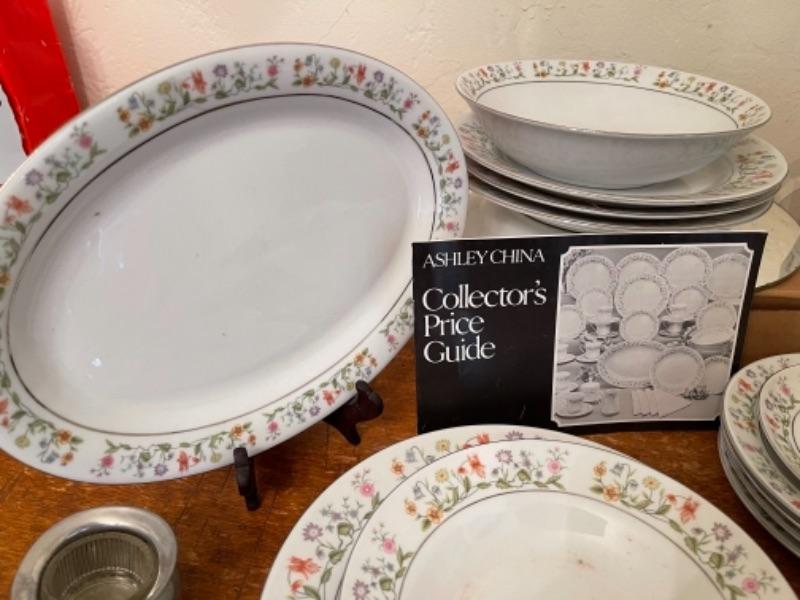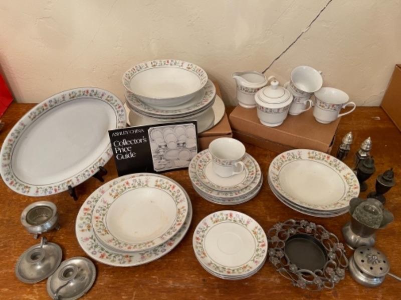 Lot 122. Service for four Ashley China with platter, serving bowl, salt and pepper, candlesticks, salt chamber--Was $25 - -Now $12