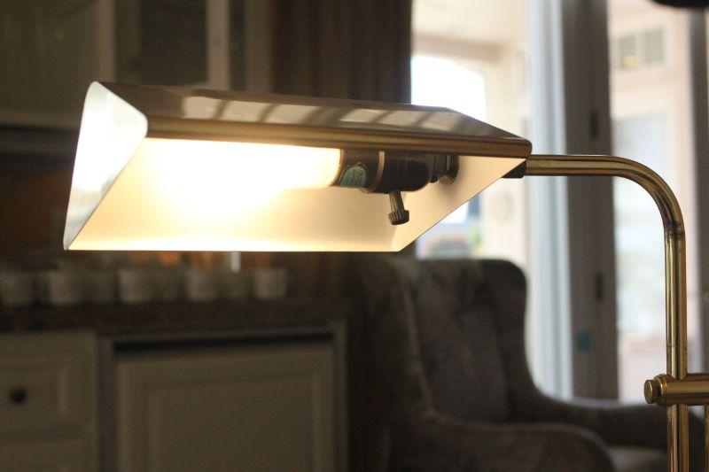 Lot 122 Standing Brass Office Lamp (works, needs slight repair)