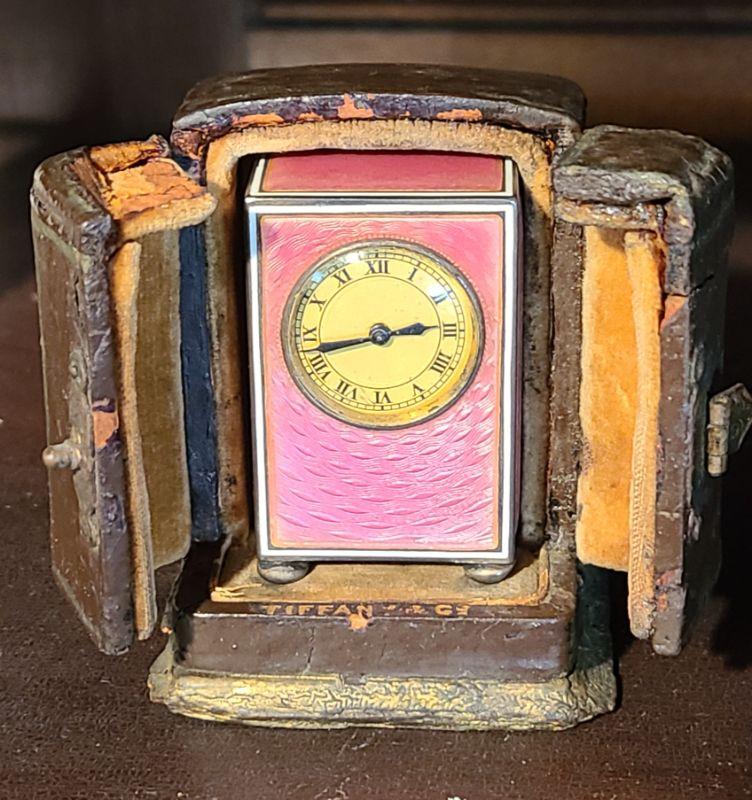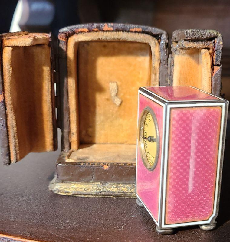 Lot 122: Tiffany &Co Clock case/ Guilloche Miniature clock WORKS!