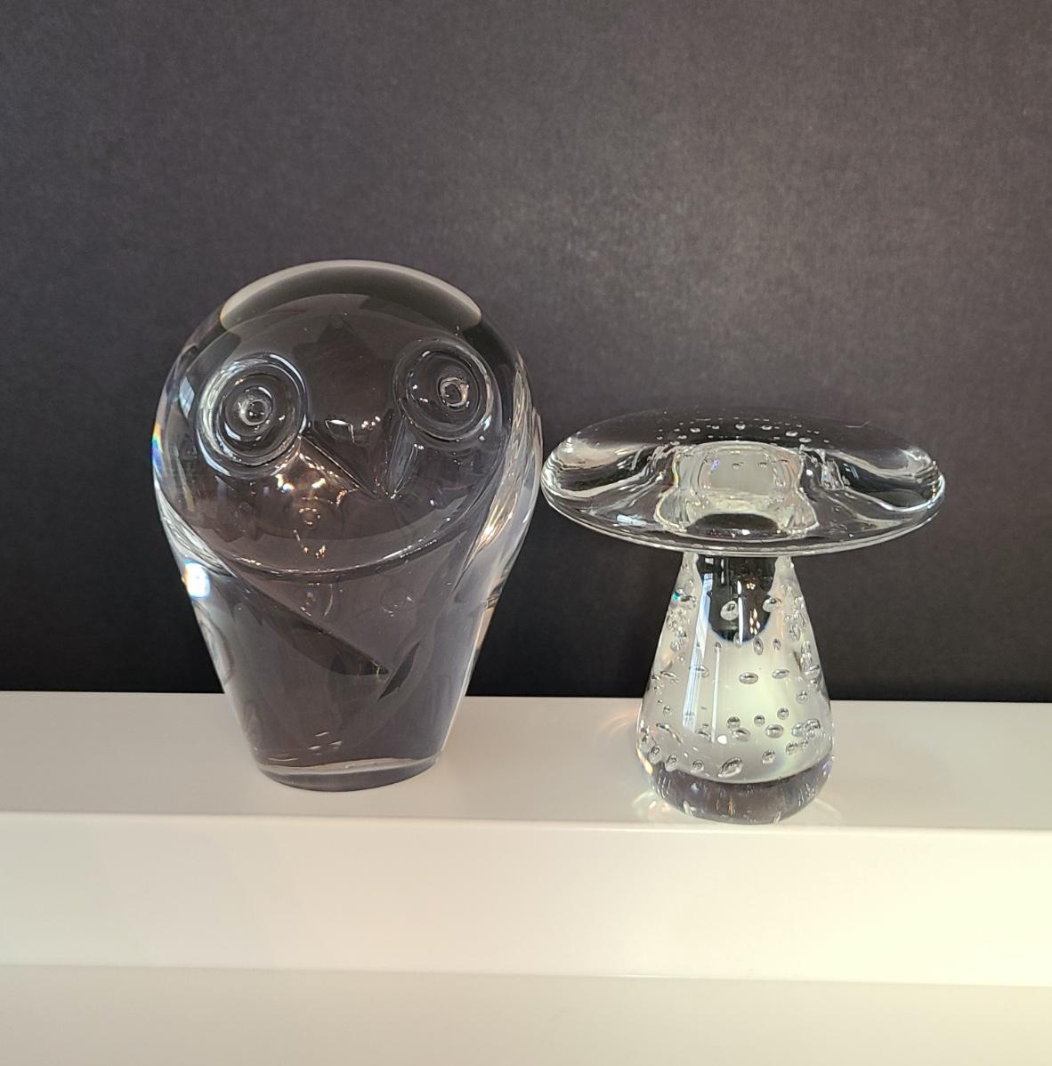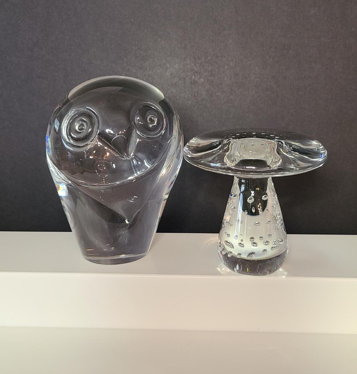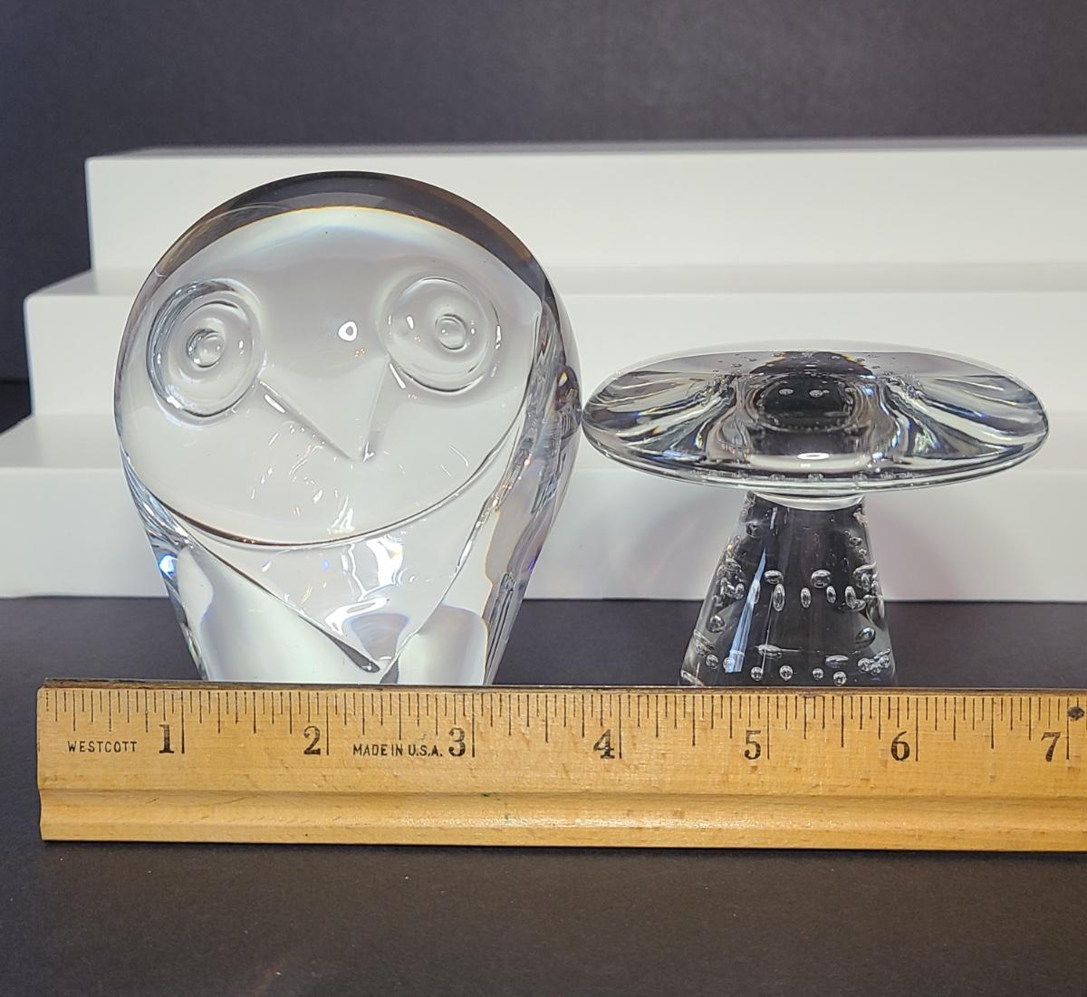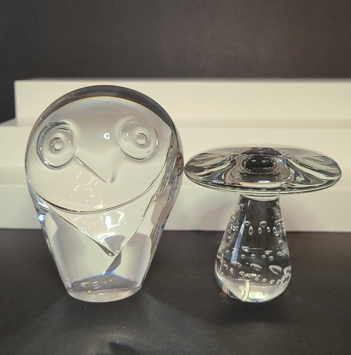 Lot 122: Vintage Art Glass Owl Paperweight & Mushroom