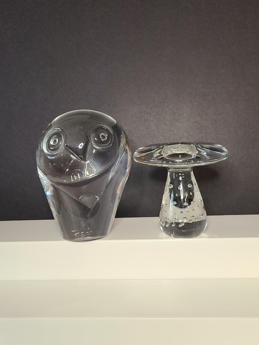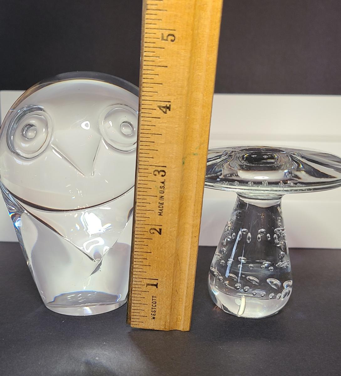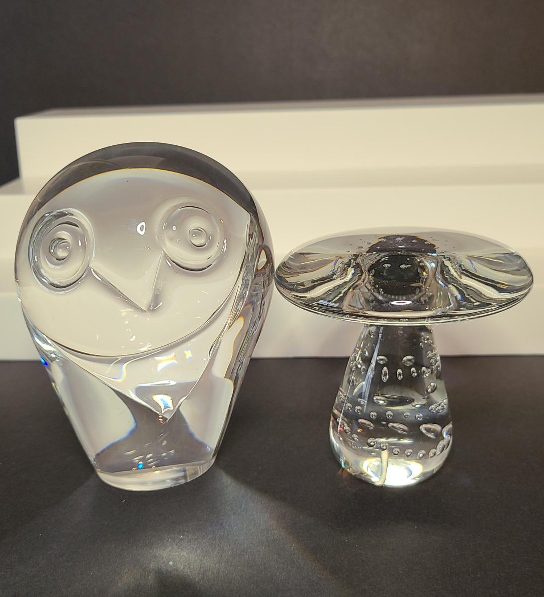 Lot 122: Vintage Art Glass Owl Paperweight & Mushroom