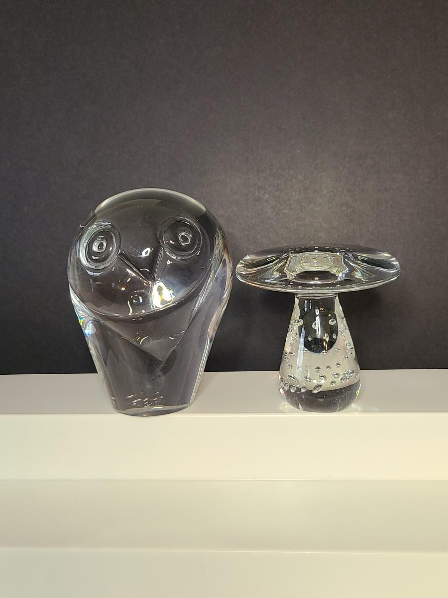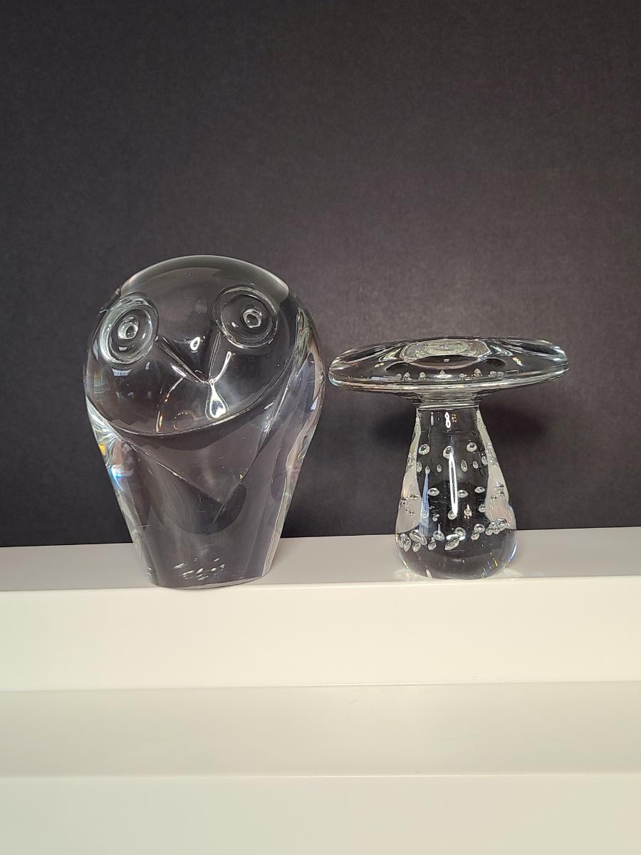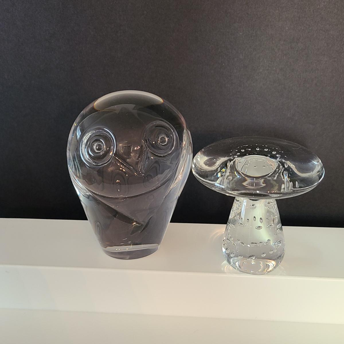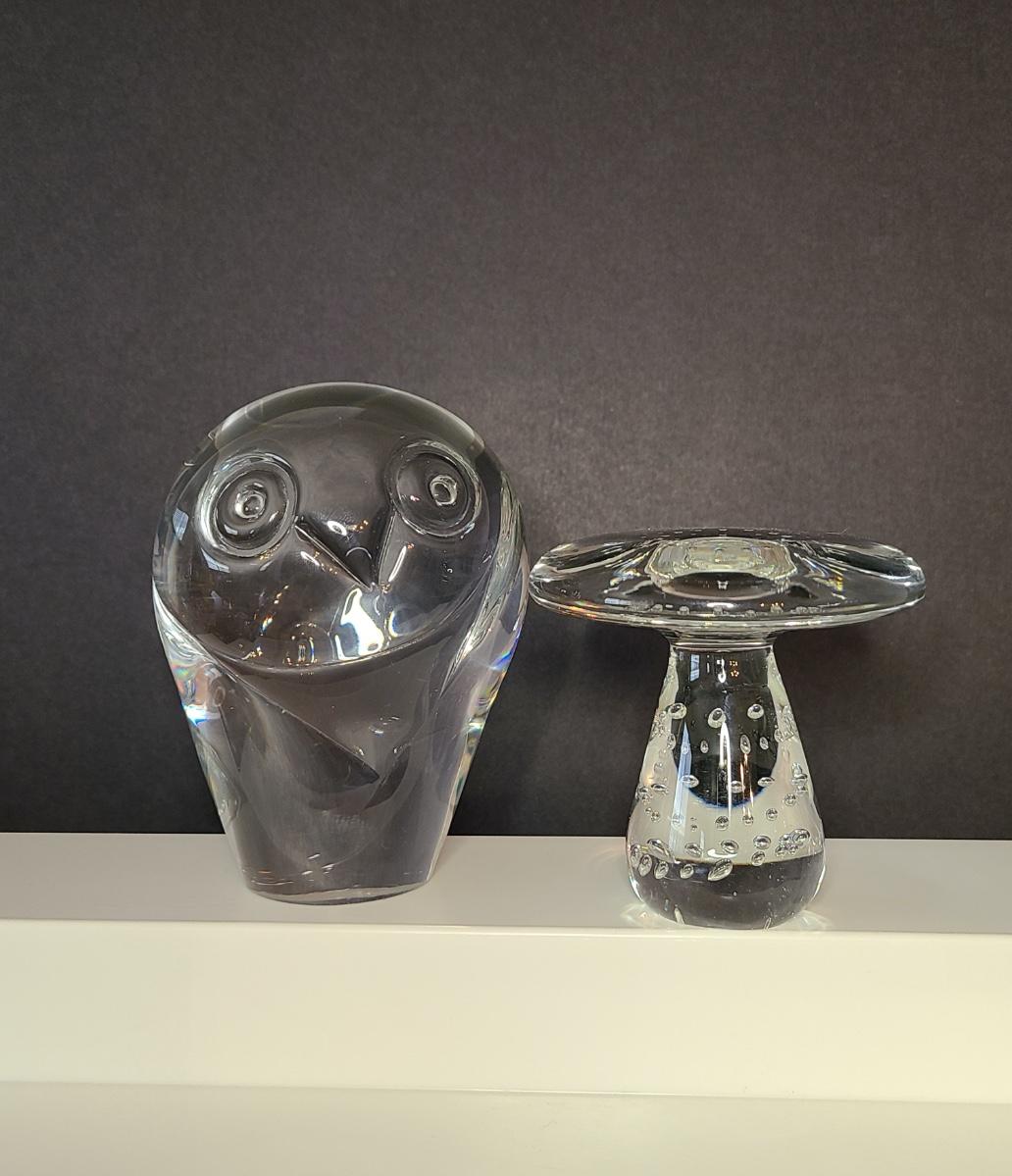 Lot 122: Vintage Art Glass Owl Paperweight & Mushroom