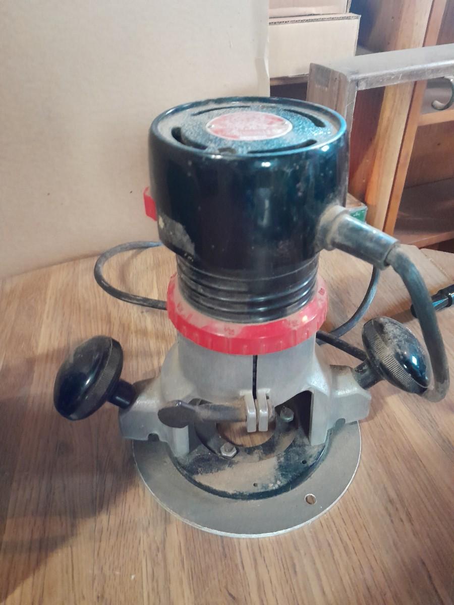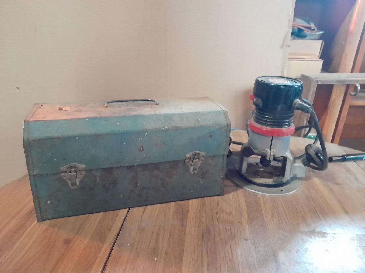 VINTAGE METAL TOOLBOX AND SEARS ROUTER MODEL NO. 315.17350