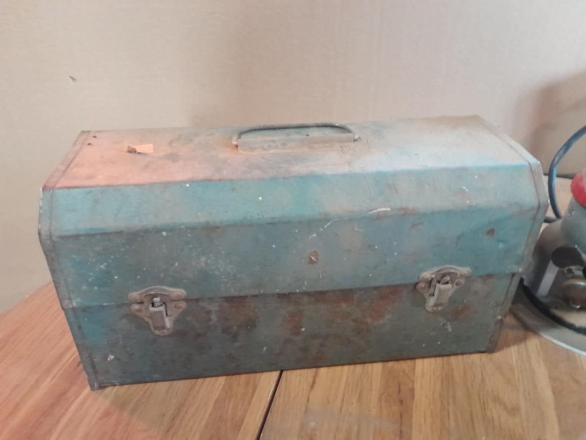 LOT 122 VINTAGE METAL TOOLBOX AND SEARS ROUTER