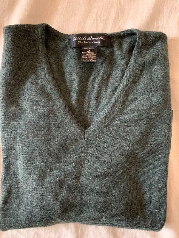 Vneck Willi Smith merino wool sweater Size L dk green