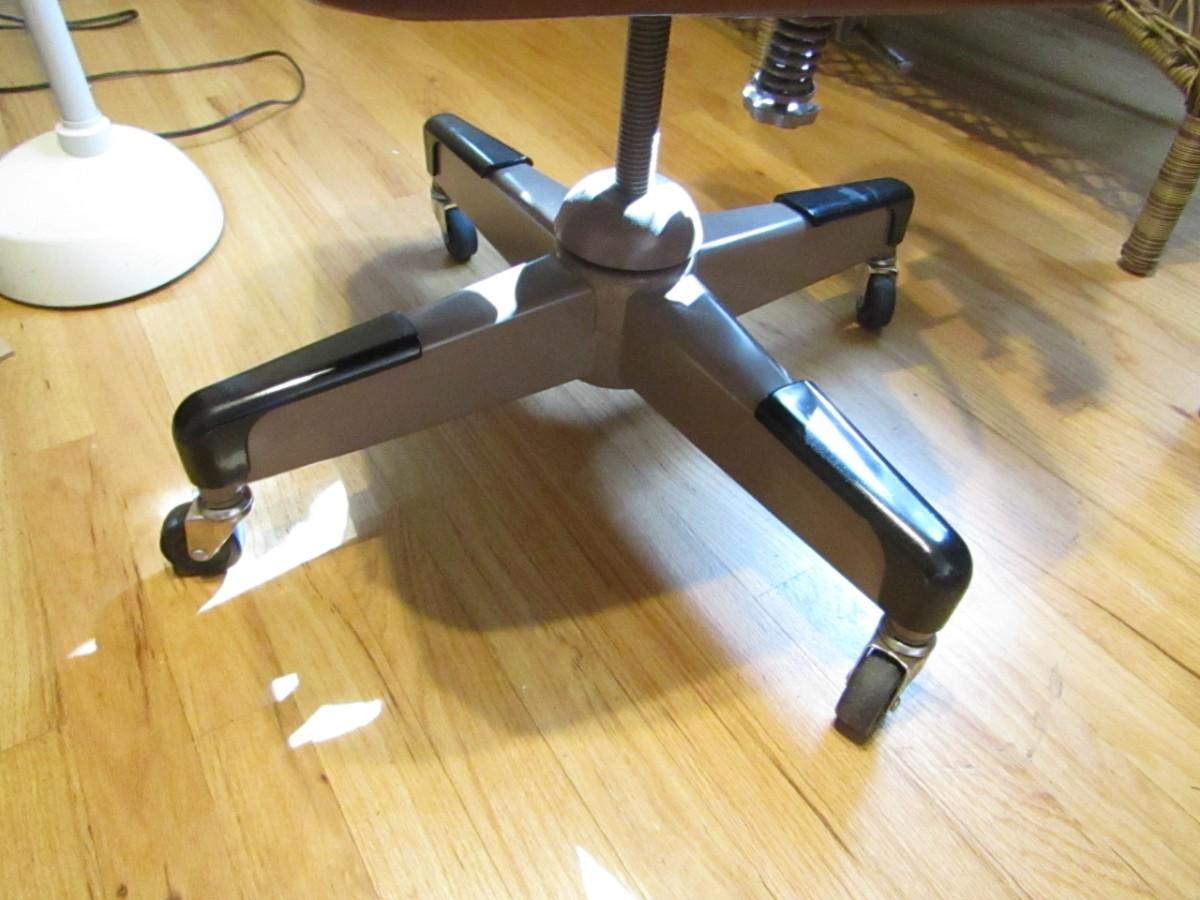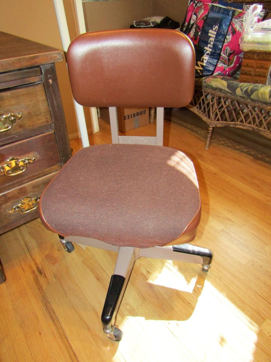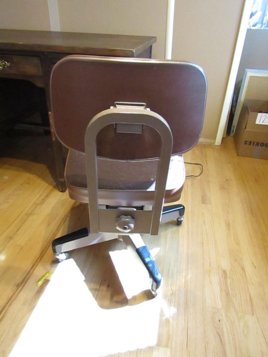 LOT 122 WOODEN DESK, VINTAGE CHAIR AND GOOSE NECK FLOOR LAMP
