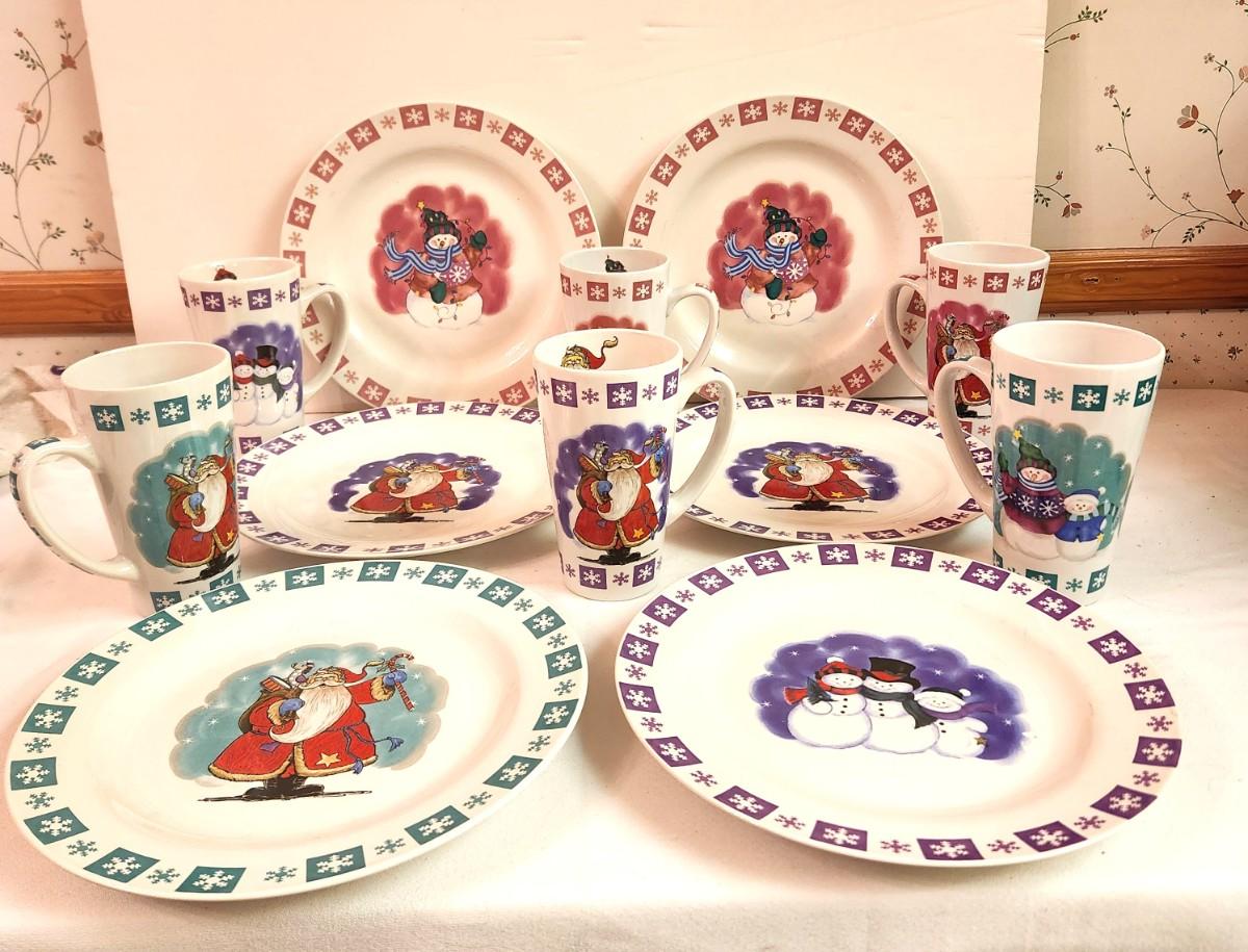 Lot #122 Xmas china - 6 plates, 6 mugs