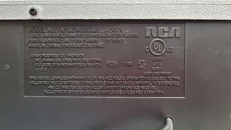 Lot 1226: Vintage RCA RP8078 Mp3 5 Disc Changer