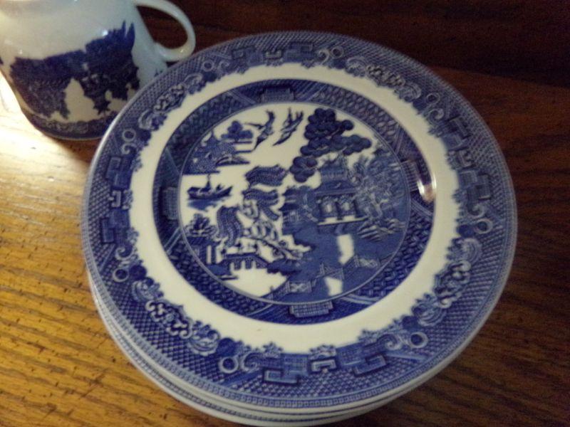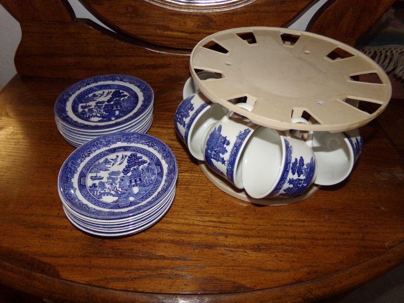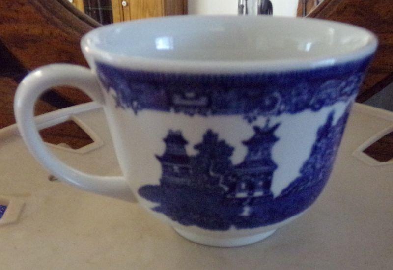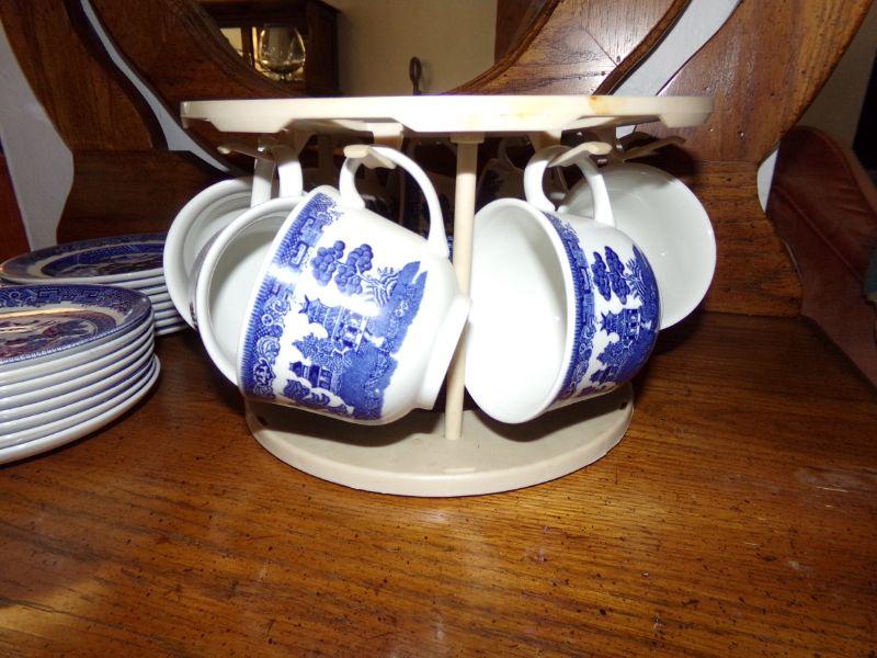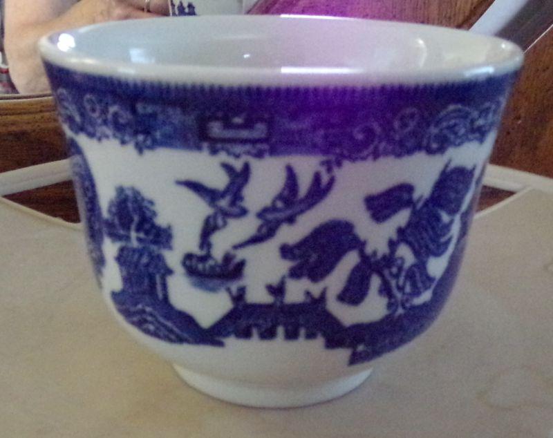 BLUE WILLOW TEACUPS AND SAUCERS IN VG CONDITION