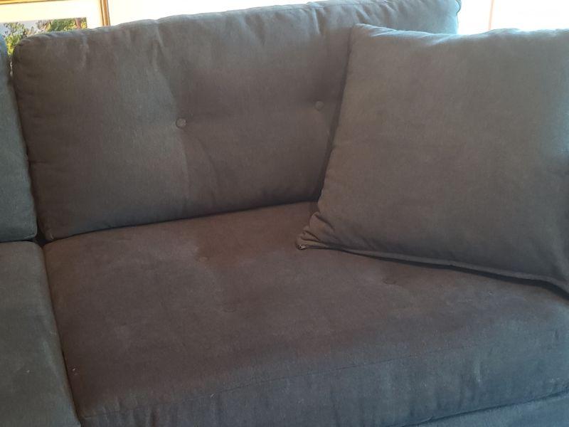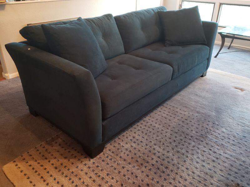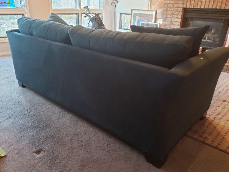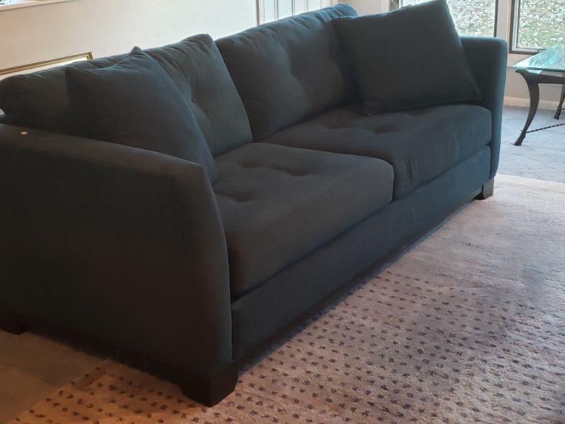Lot 123: Blue Couch (photos look dark but close up of fabric shows true color)