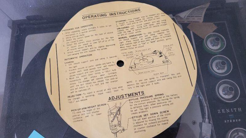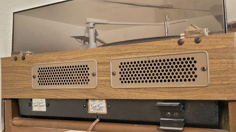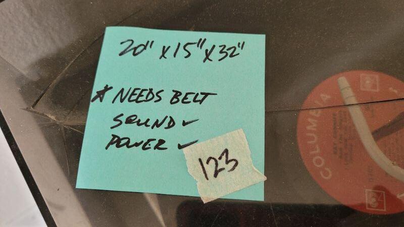Powers On, Knob Backlights Work, Sound Out Ports worked during speaker test but likely due to either age (lack of TLC) or our inability to properly get the process to produce the desired operation, we could only get the record to play for a few seconds before the needle would raise then move towards the clip stopping the record from spinning. ☆ Sold AS IS ☆