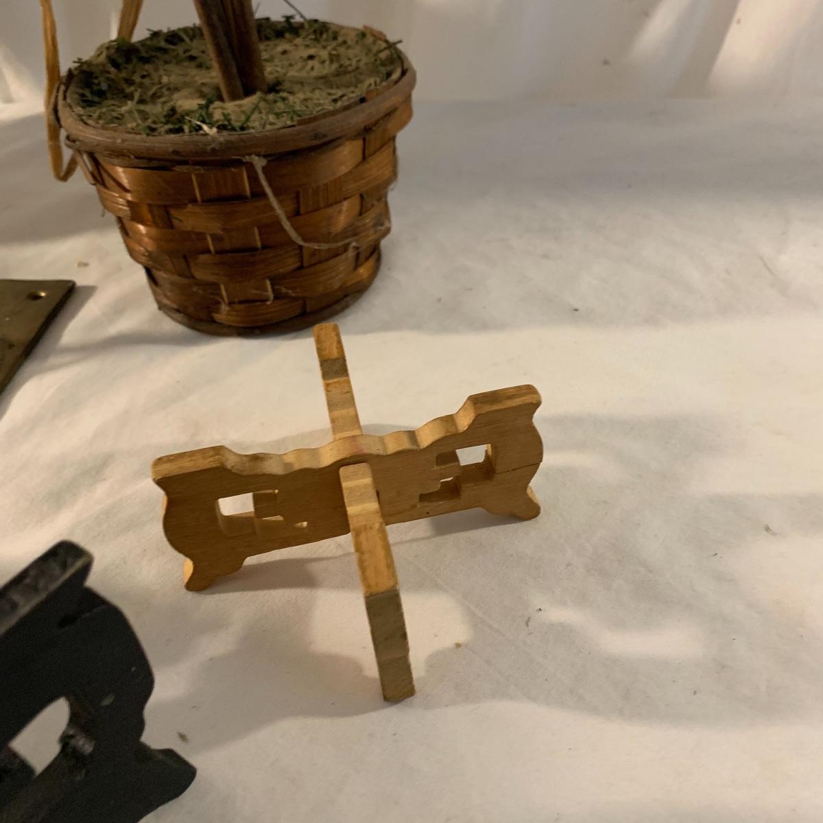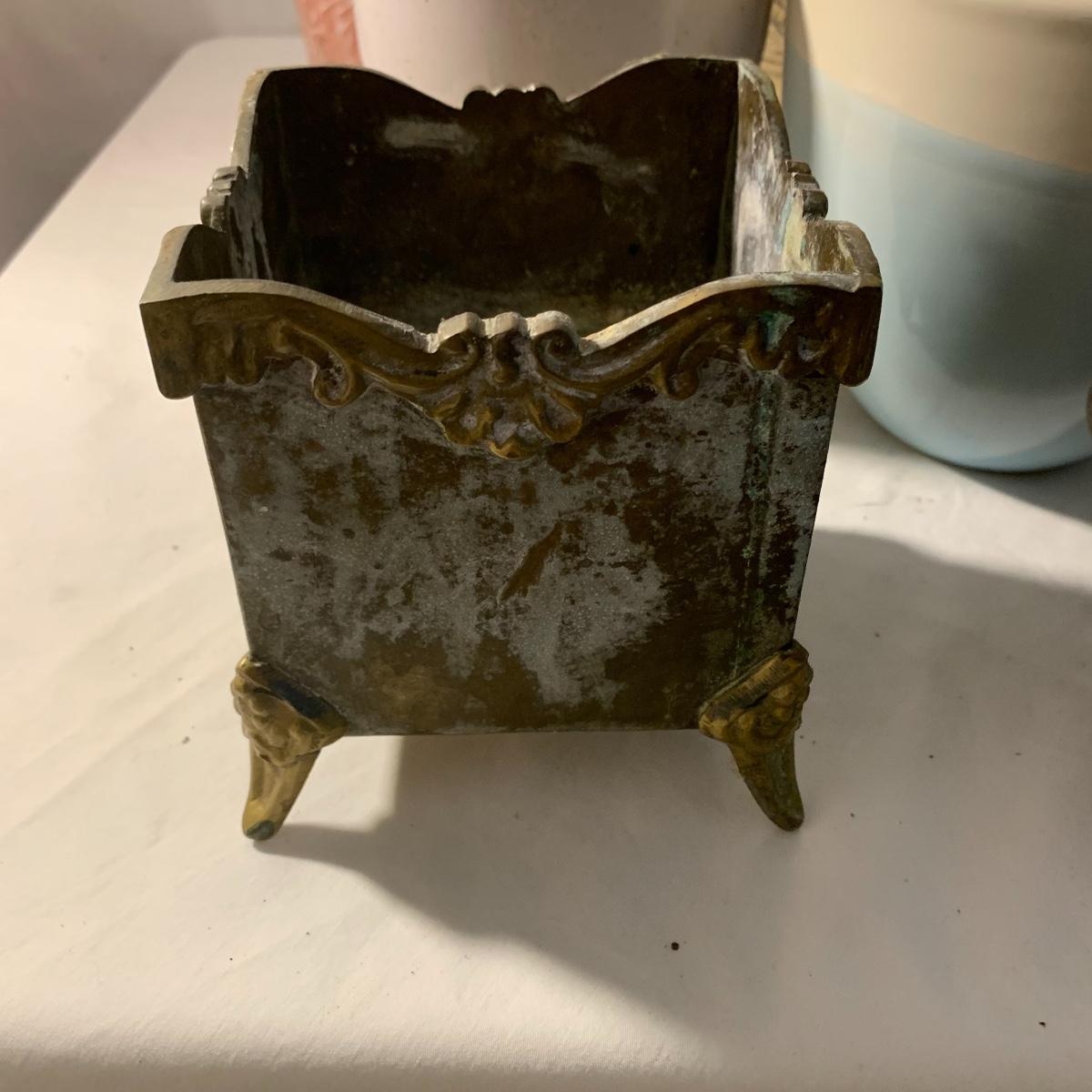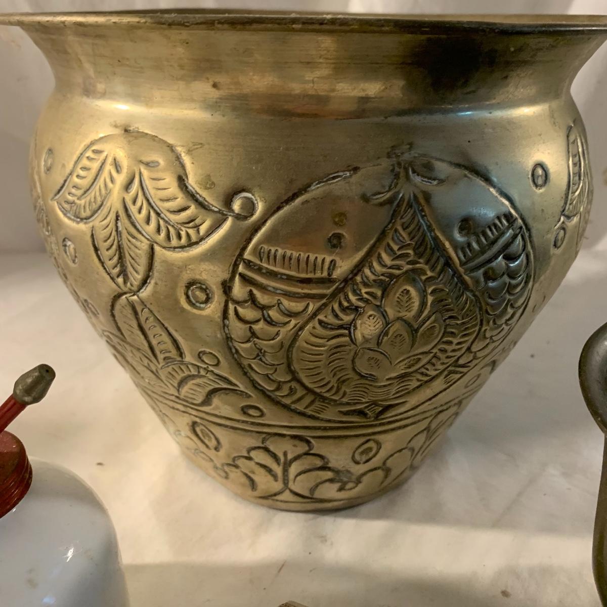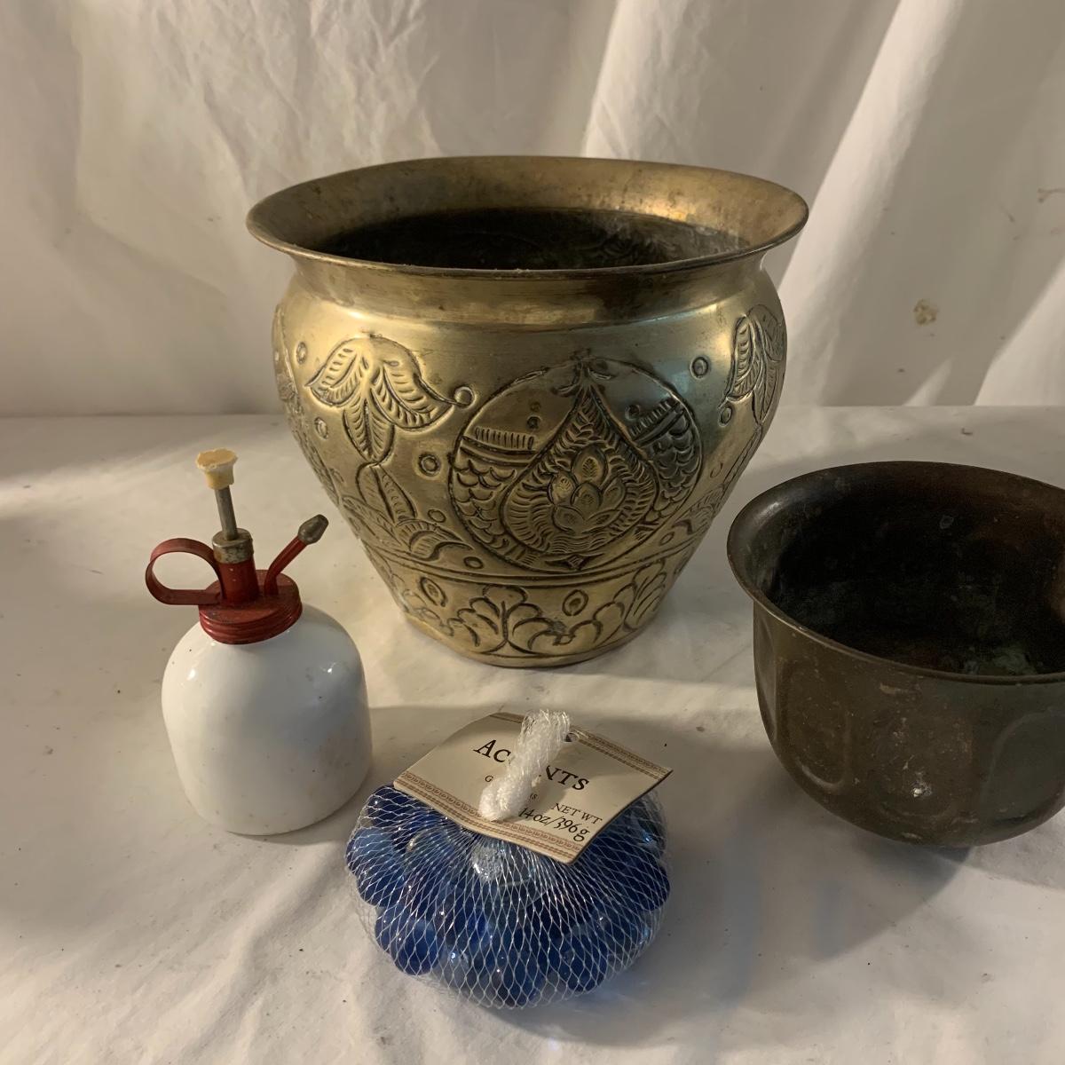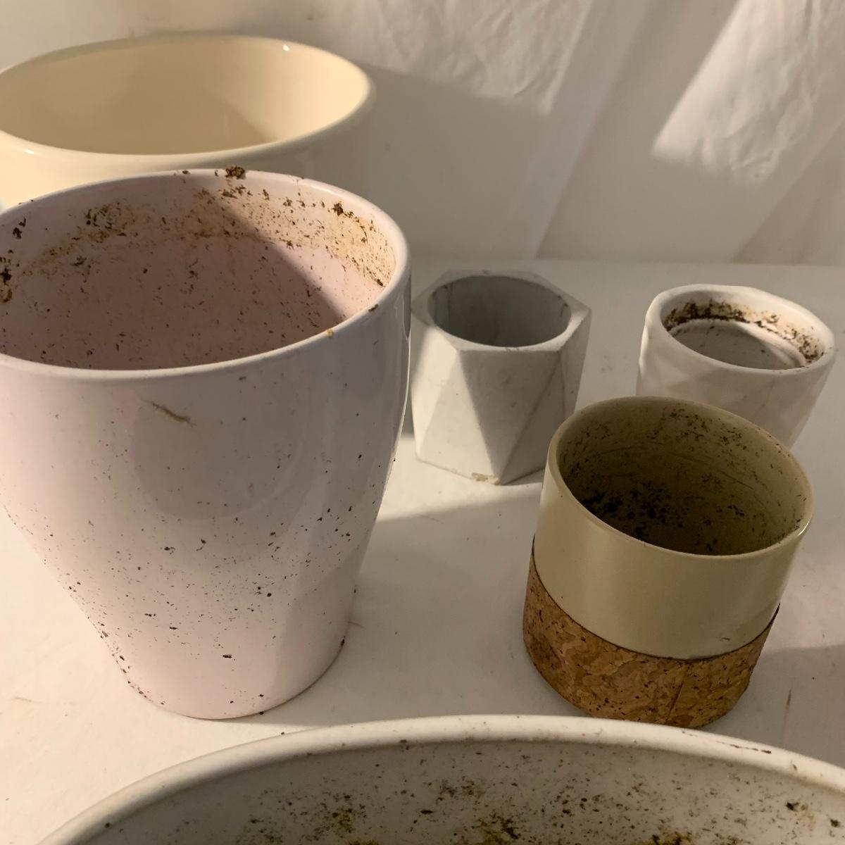 Calling all garden lovers! Gather around! Lot 123 includes numerous pots, two vases (the larger is 14” tall), a star shaped pot, tools, accessories, gardening books, and two plant shelves. The small table is 20” tall, and the shelf measures 10” deep X 16” wide X 36” tall. There’s a little of everything here. See pics for content, condition, and detail. Local pickup only.