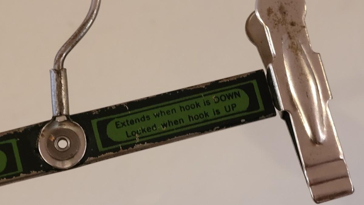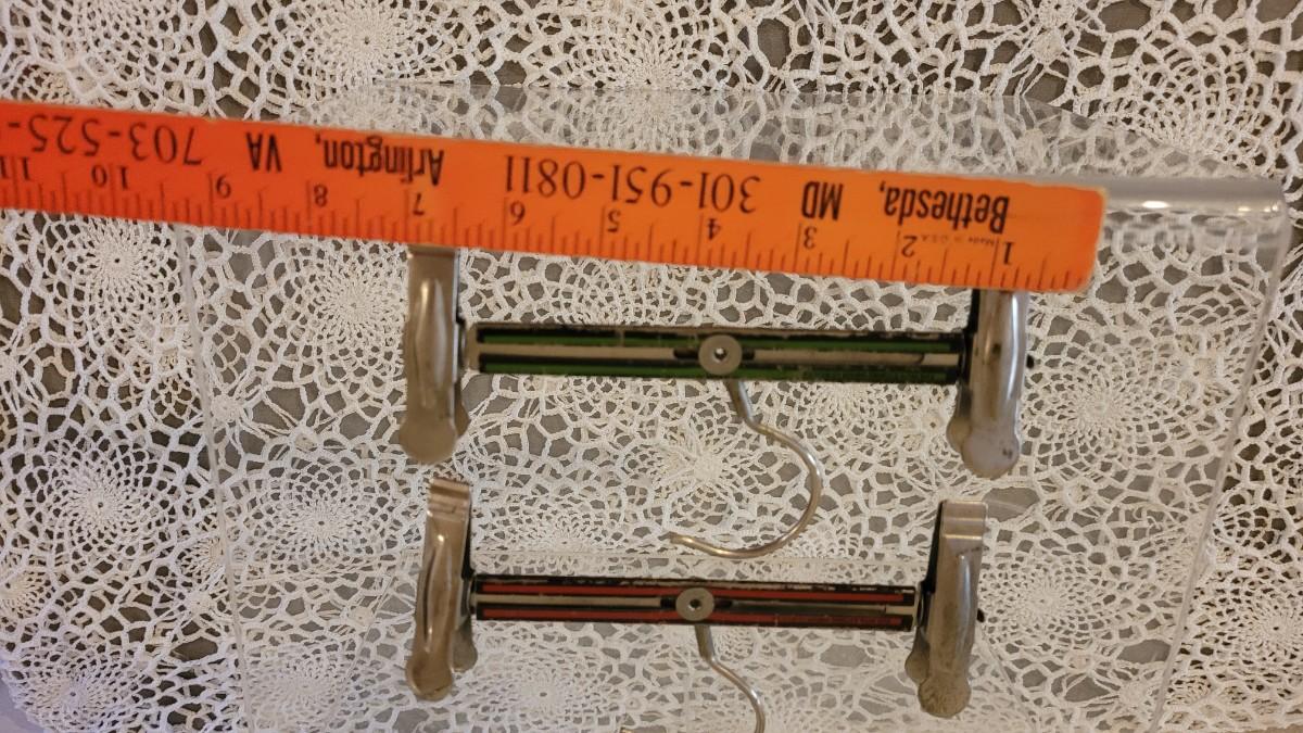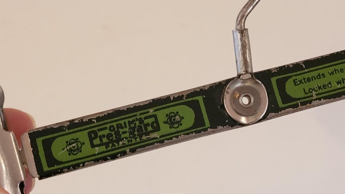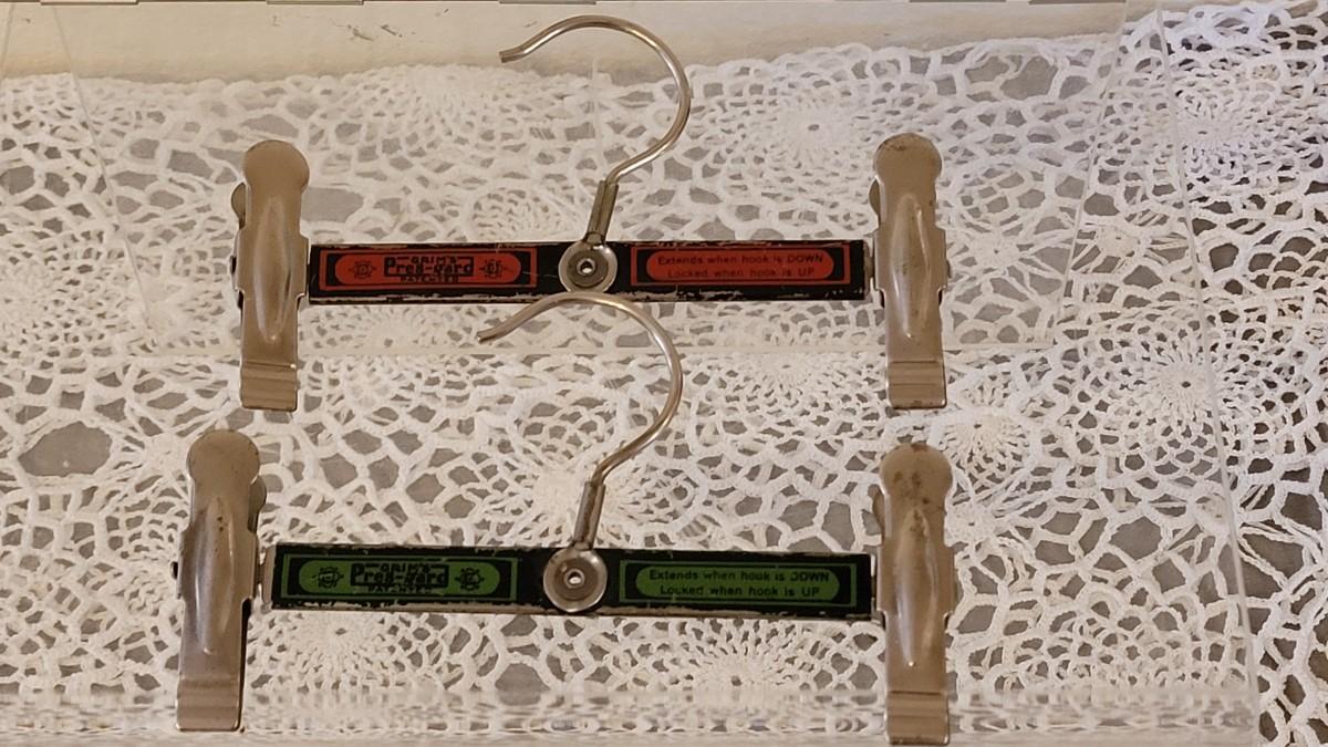 Lot 123: Vintage Broom/Mop Clip Rack & (2) Grims Pres-Gard Hangers
