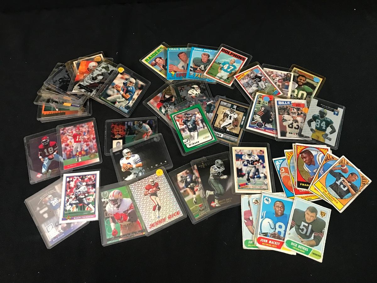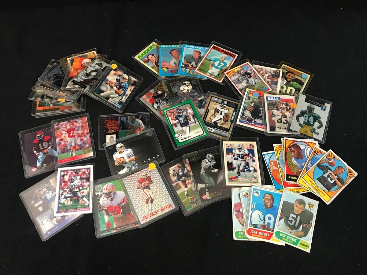 Lot 123: Football Cards - 60s- 90s -  Butkus, Montana, Jerry Rice, Barry Sanders & More