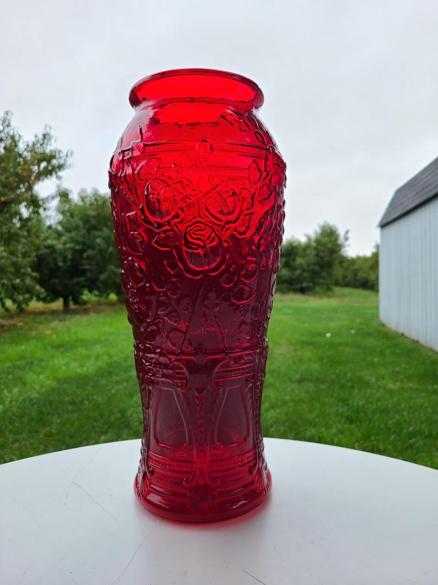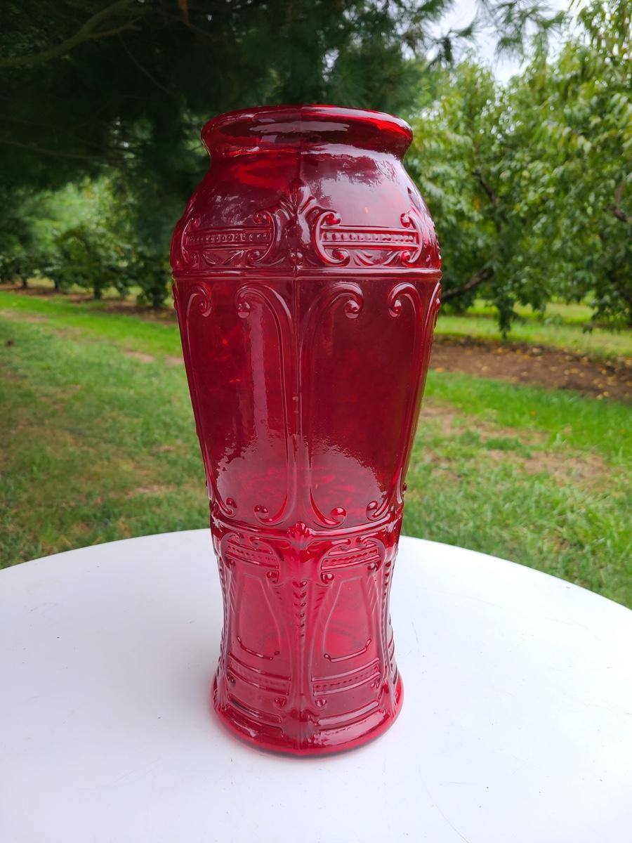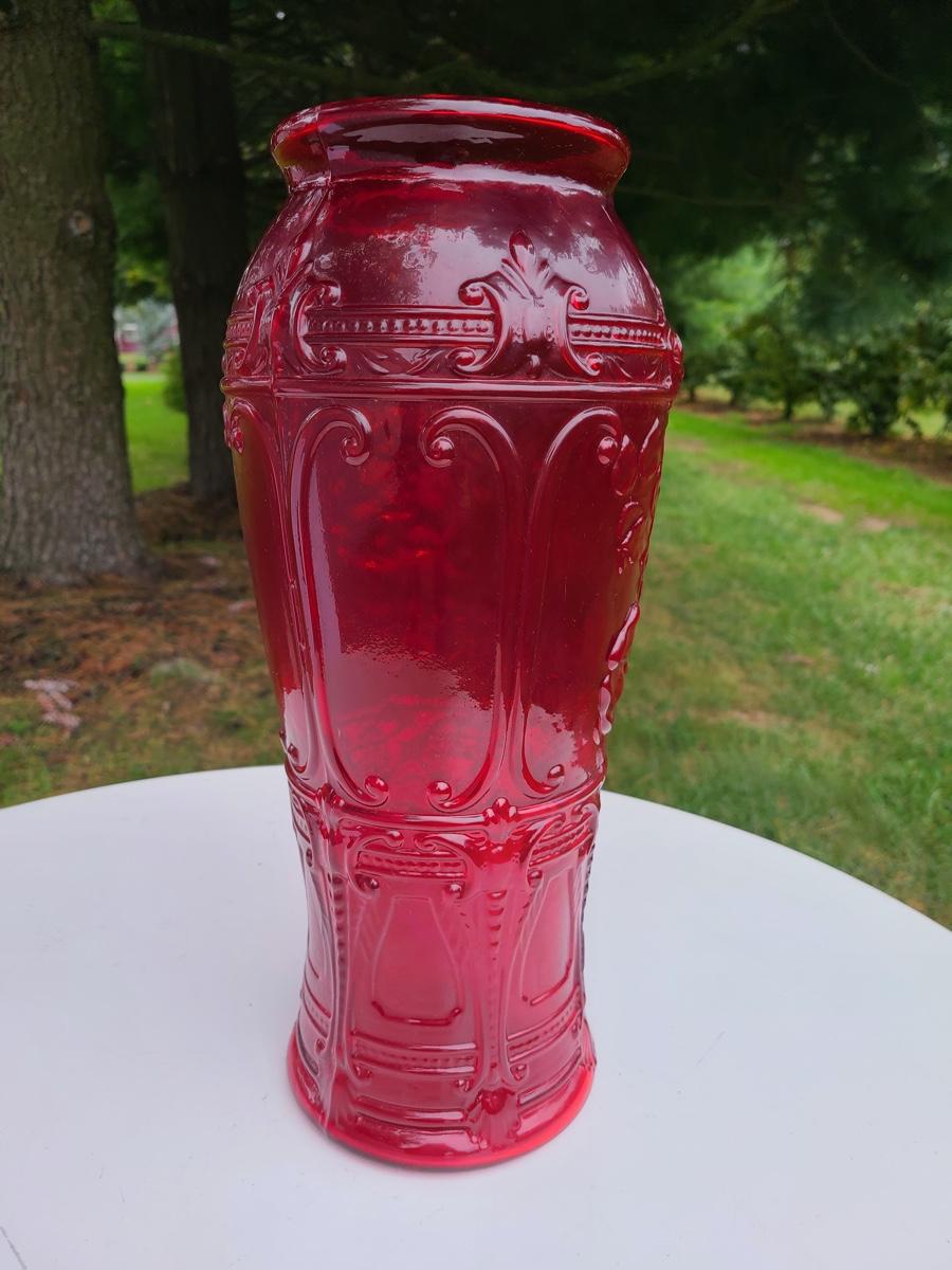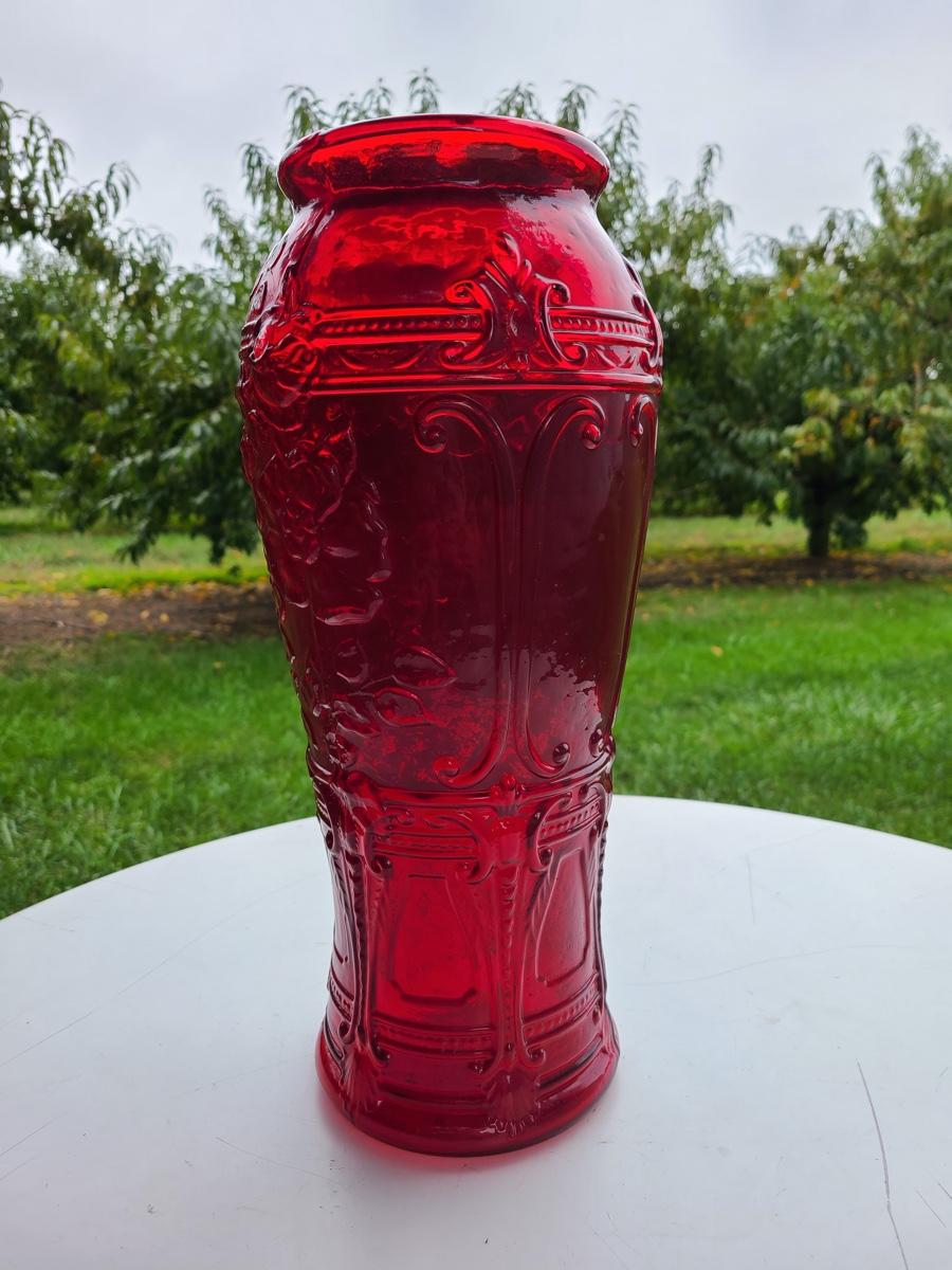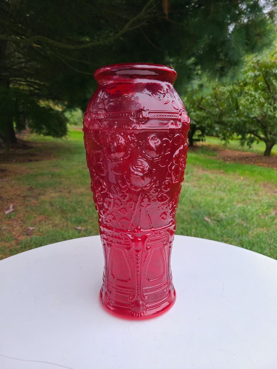Lot 123: Ruby Red Poured Mold Art Glass Vase 15 inches Tall