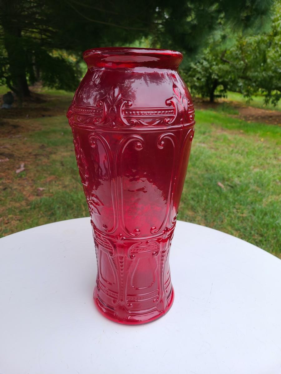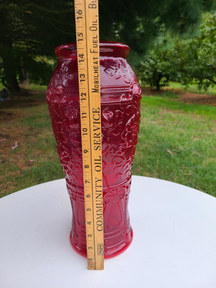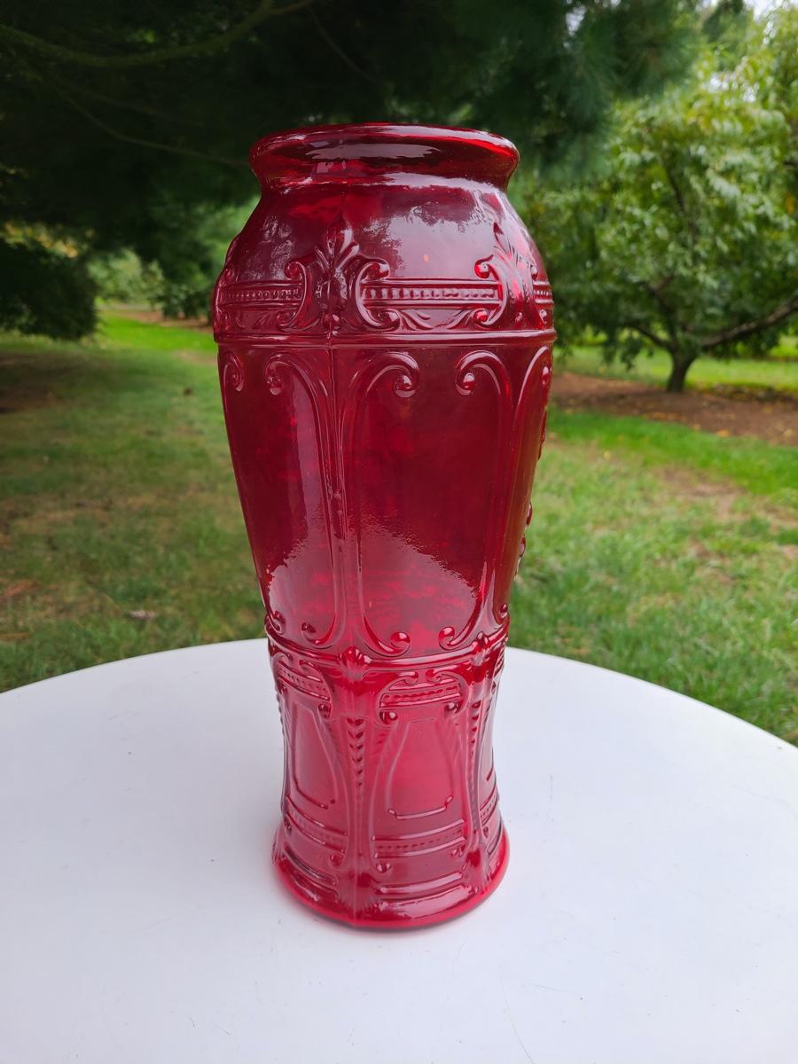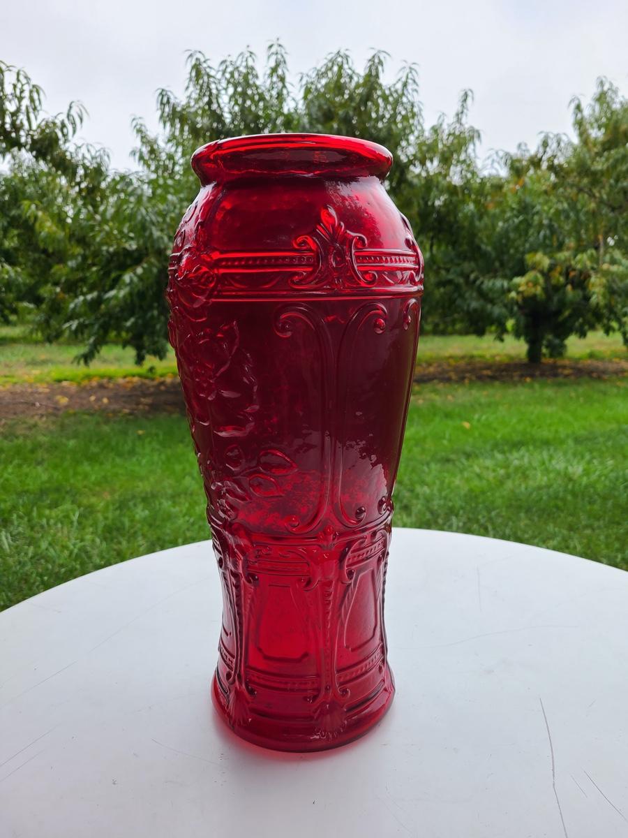 Lot 123: Ruby Red Poured Mold Art Glass Vase 15 inches Tall