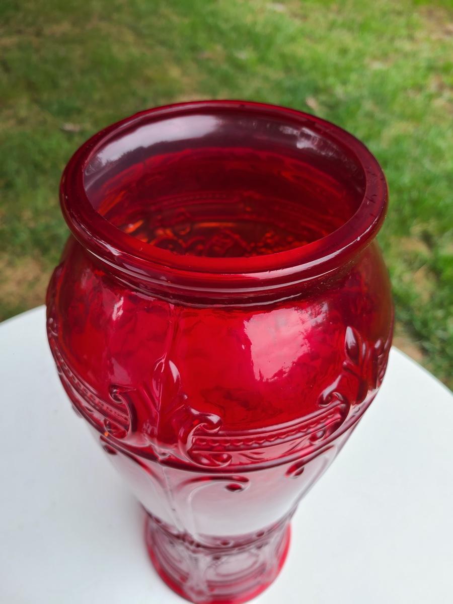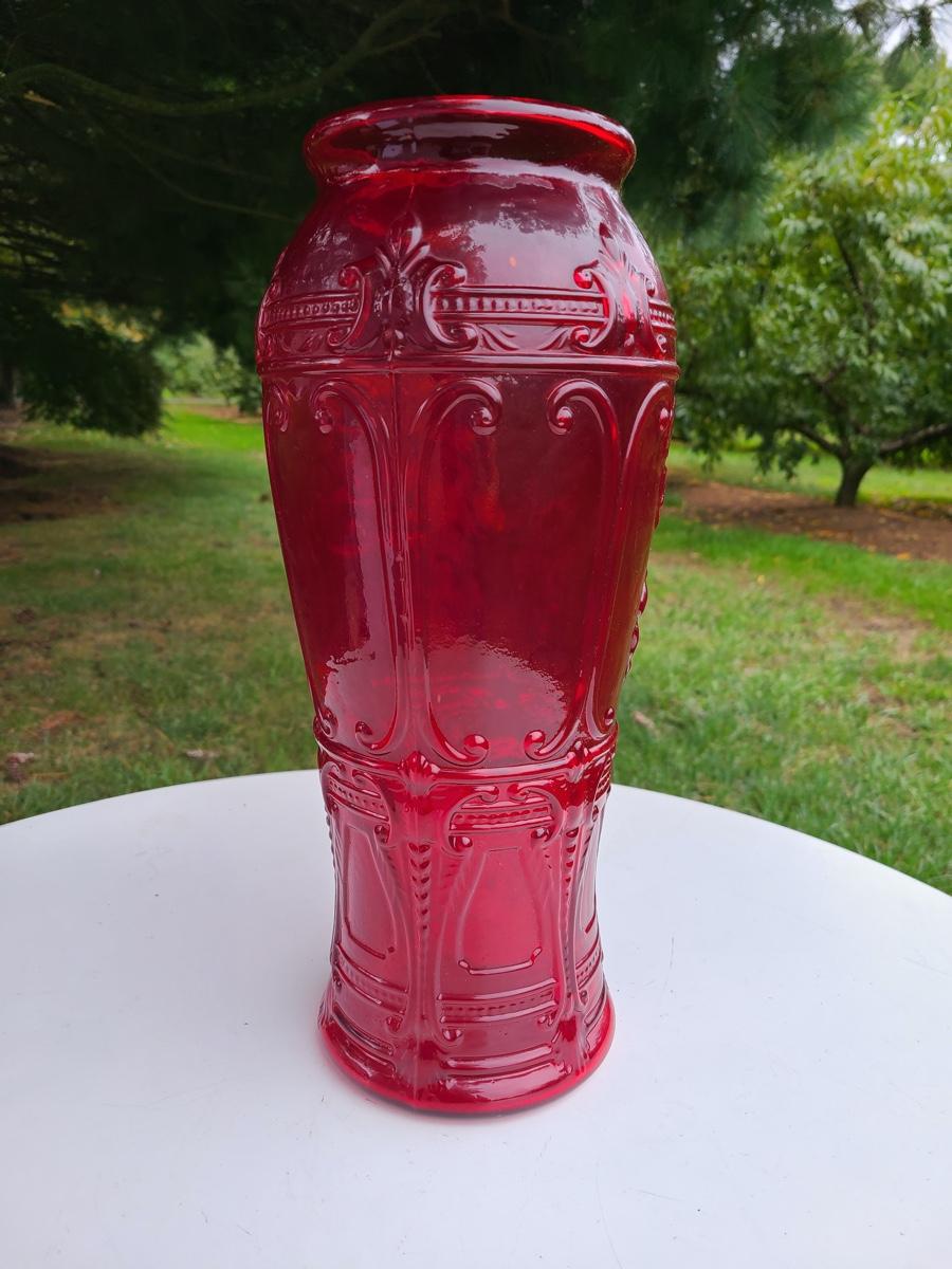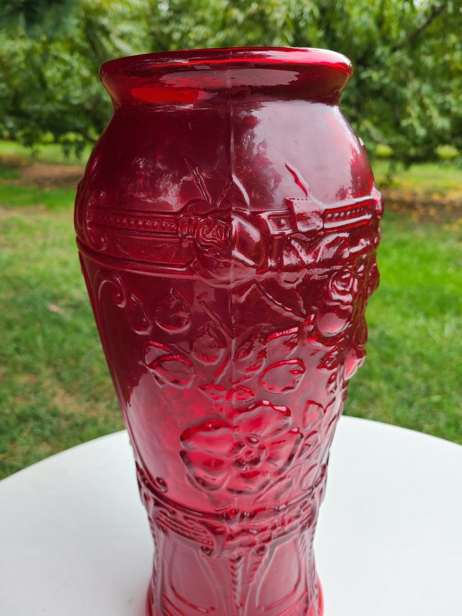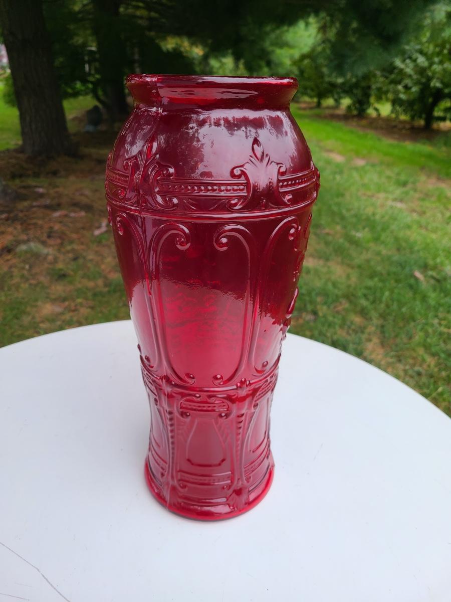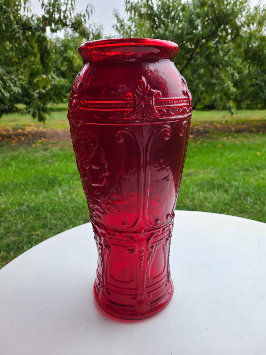 Lot 123: Ruby Red Poured Mold Art Glass Vase 15 inches Tall