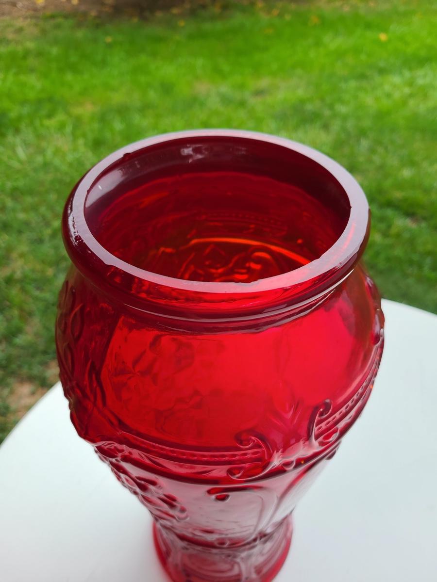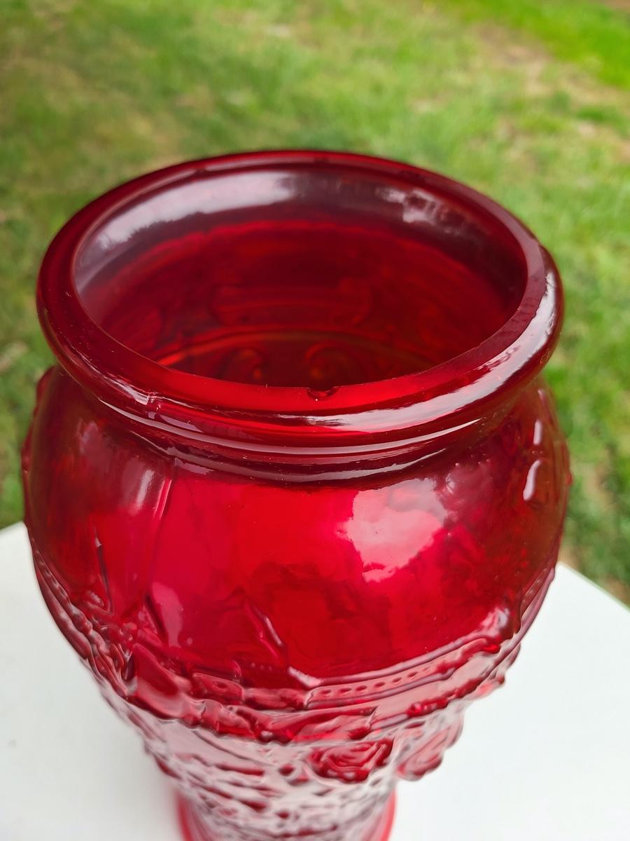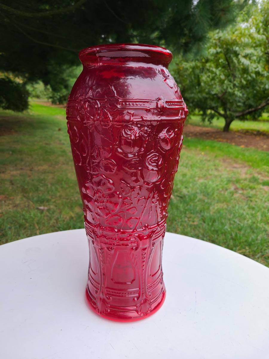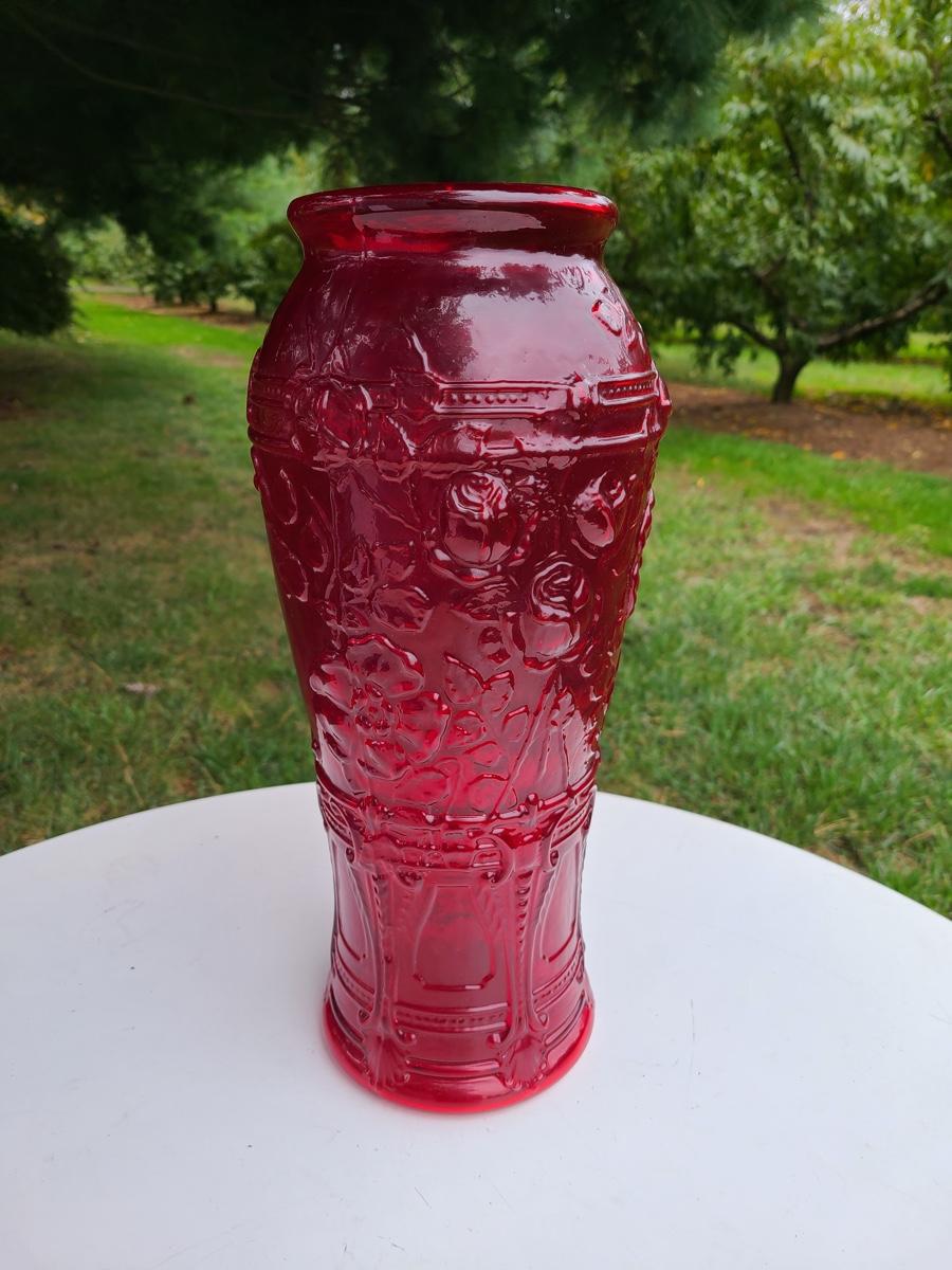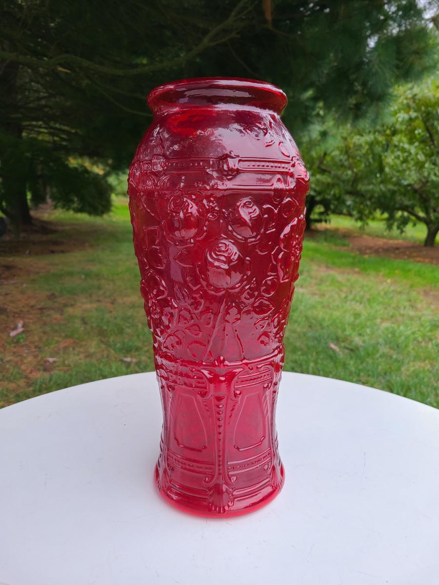 Lot 123: Ruby Red Poured Mold Art Glass Vase 15 inches Tall