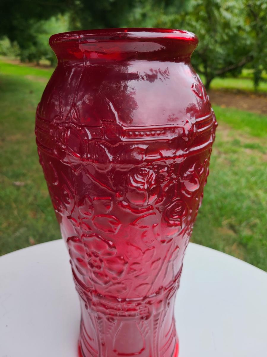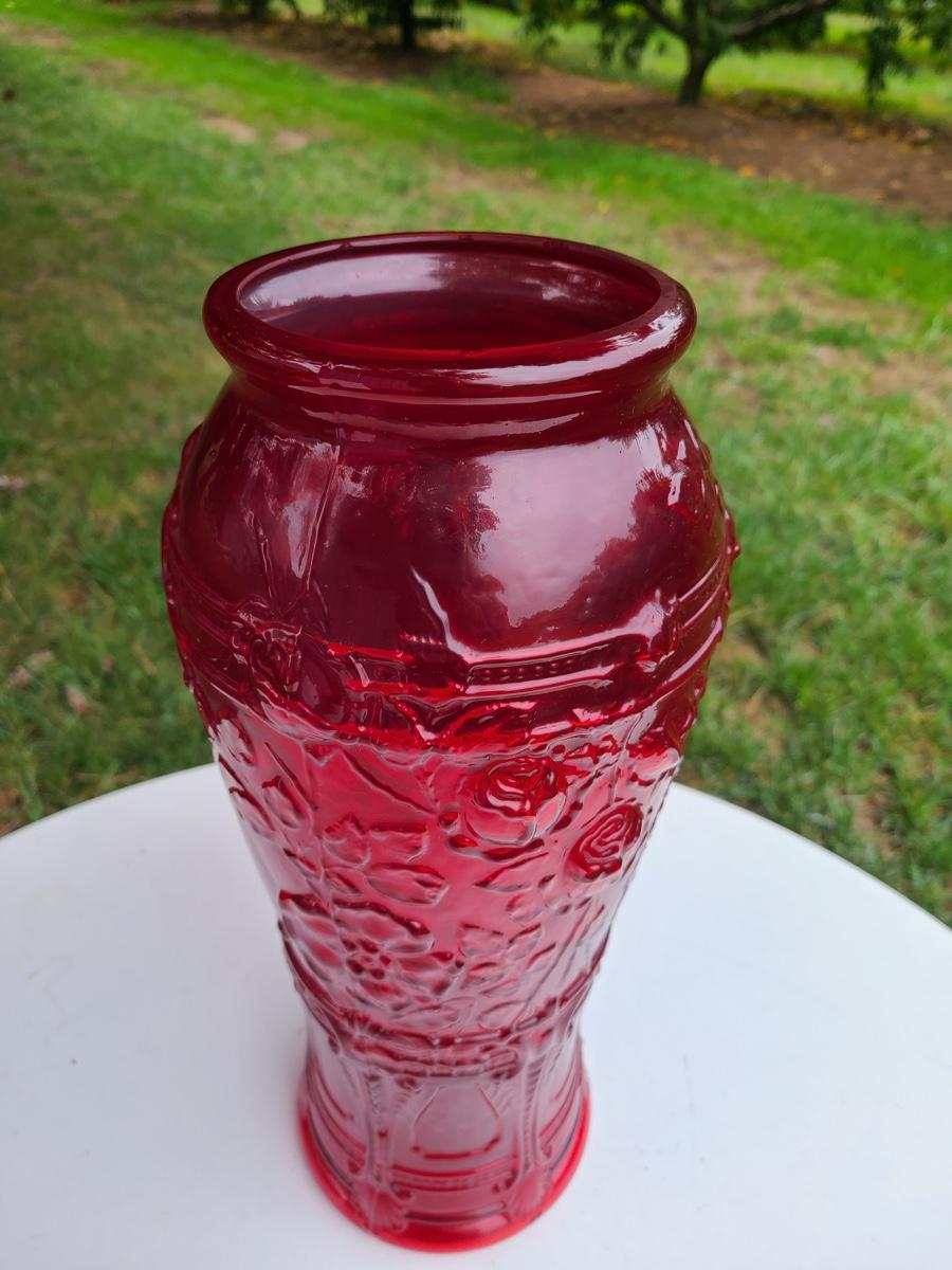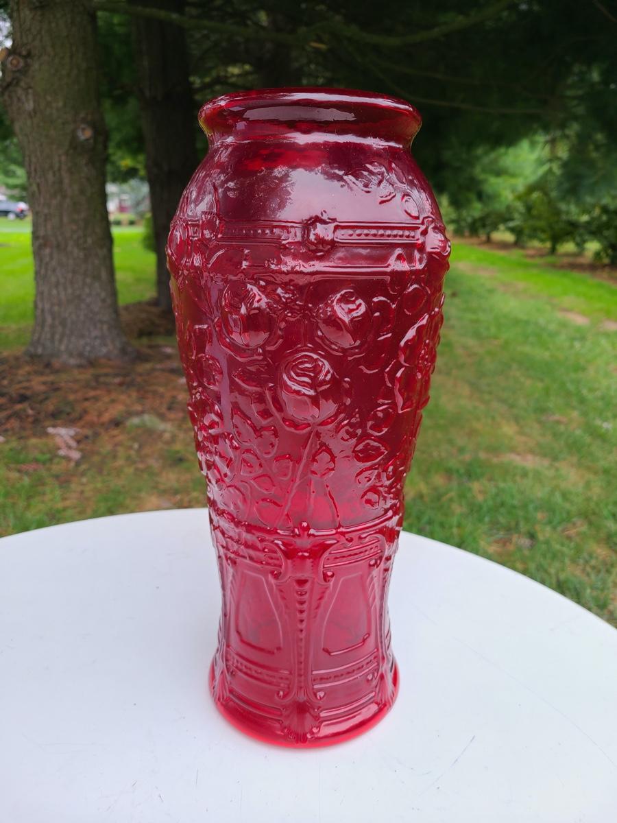 We received a message that this item was commissioned to be made in the Ohio River Valley by a New Jersey dealer and then sold here in NJ. So it was not made in NJ, but sold in NJ. It is mold made and not flashed in color. It is a deep ruby red color and has mold lines down the side but a thick base from a pour. There is a relief of roses on the front of the vase. It does have a manufacturer crack line of the interior base line in the glass itself and can be seen when you flip the vase upside down and inspect. This is a stunning piece and measures 15 inches tall! The pictures show condition, measurements if taken, and what is included in the lot. Due to the large amount that we photograph and the time frame, we are not always able to take measurements. All items unless noted, are pre-owned and have been used. If you purchased furniture, you must bring help. We do not allow one person to carry large furniture out on their own. Bring help, tools and a truck for the safety of our client’s homes, and your personal safety. Company policy. Thank you.