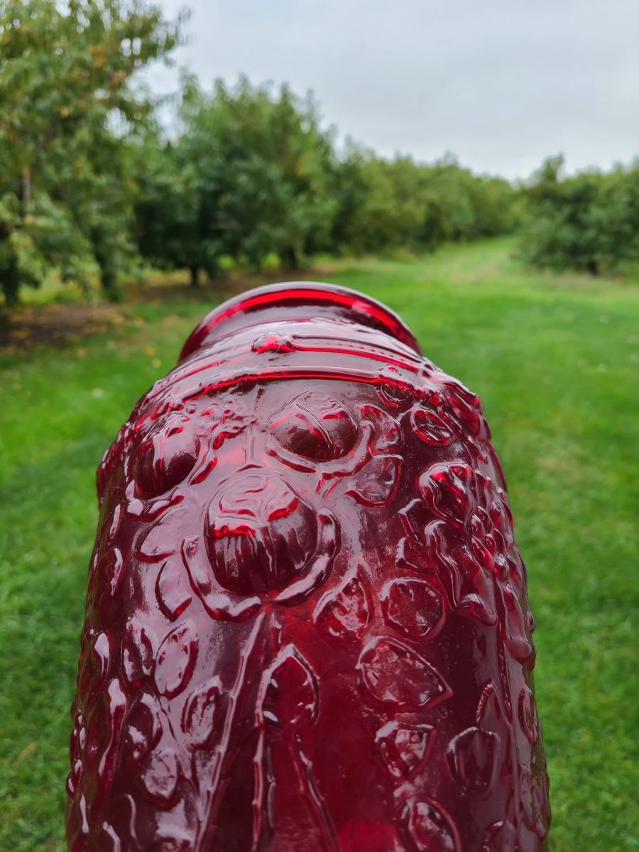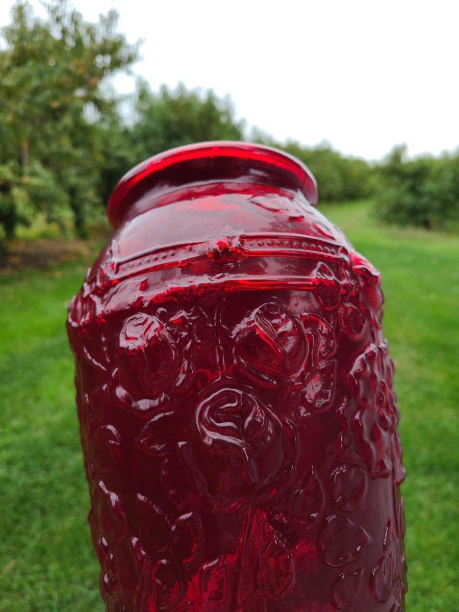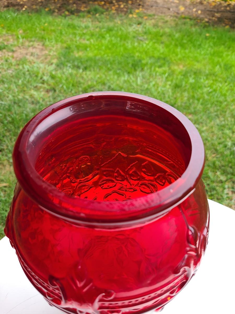 We received a message that this item was commissioned to be made in the Ohio River Valley by a New Jersey dealer and then sold here in NJ. So it was not made in NJ, but sold in NJ. It is mold made and not flashed in color. It is a deep ruby red color and has mold lines down the side but a thick base from a pour. There is a relief of roses on the front of the vase. It does have a manufacturer crack line of the interior base line in the glass itself and can be seen when you flip the vase upside down and inspect. This is a stunning piece and measures 15 inches tall! The pictures show condition, measurements if taken, and what is included in the lot. Due to the large amount that we photograph and the time frame, we are not always able to take measurements. All items unless noted, are pre-owned and have been used. If you purchased furniture, you must bring help. We do not allow one person to carry large furniture out on their own. Bring help, tools and a truck for the safety of our client’s homes, and your personal safety. Company policy. Thank you.