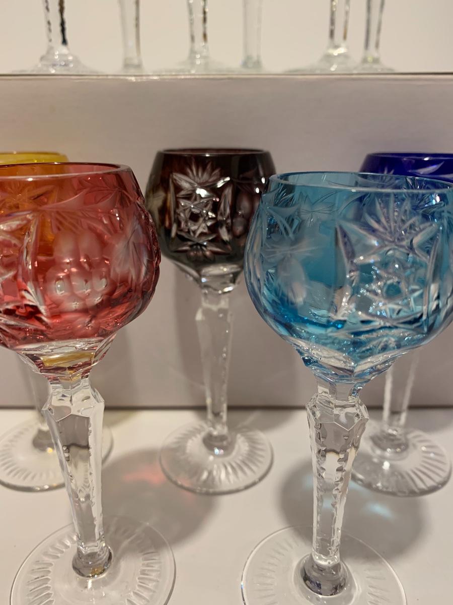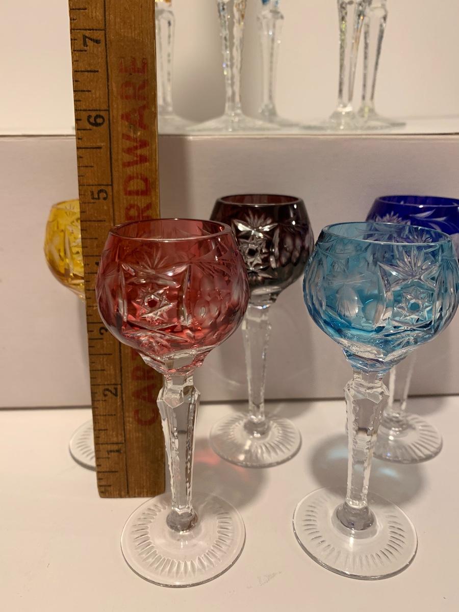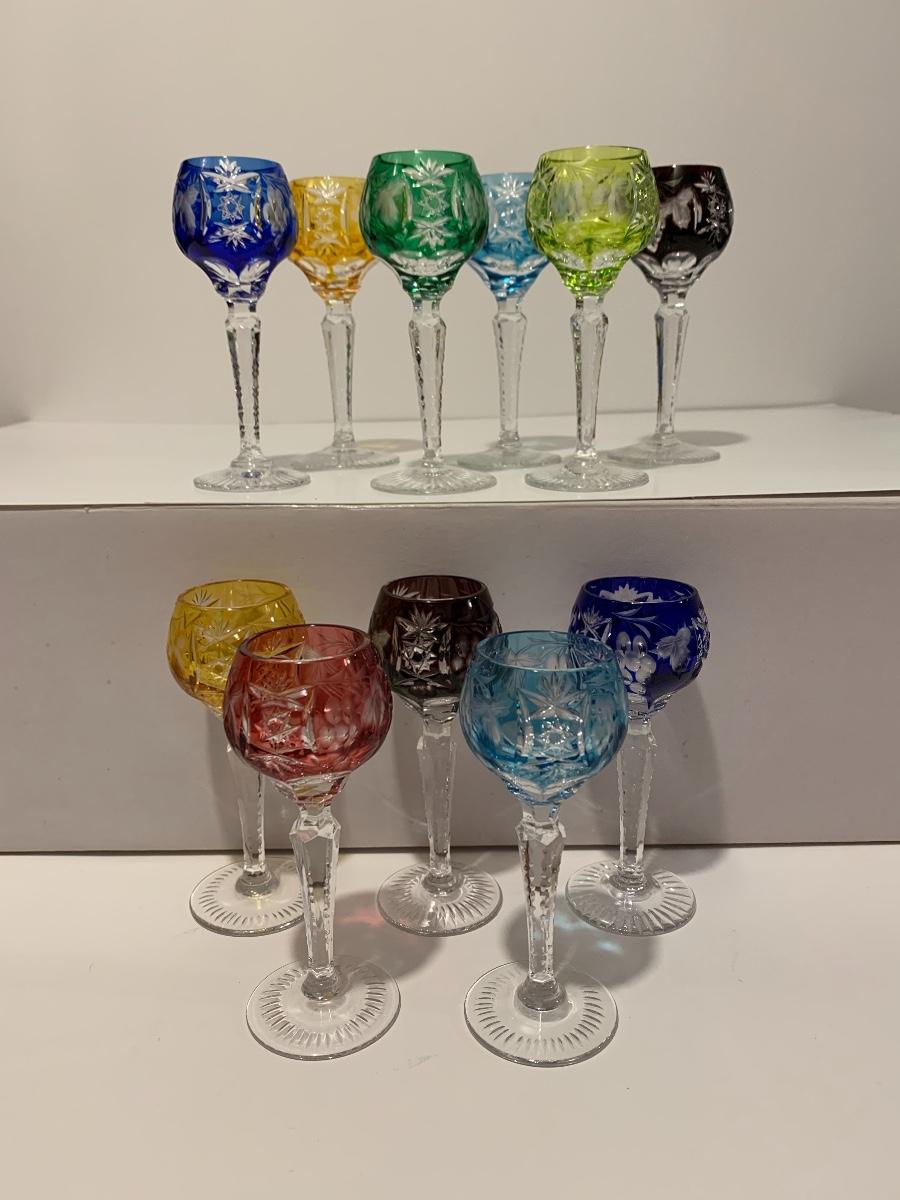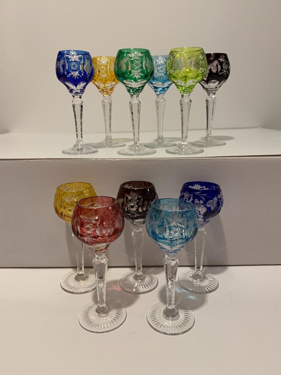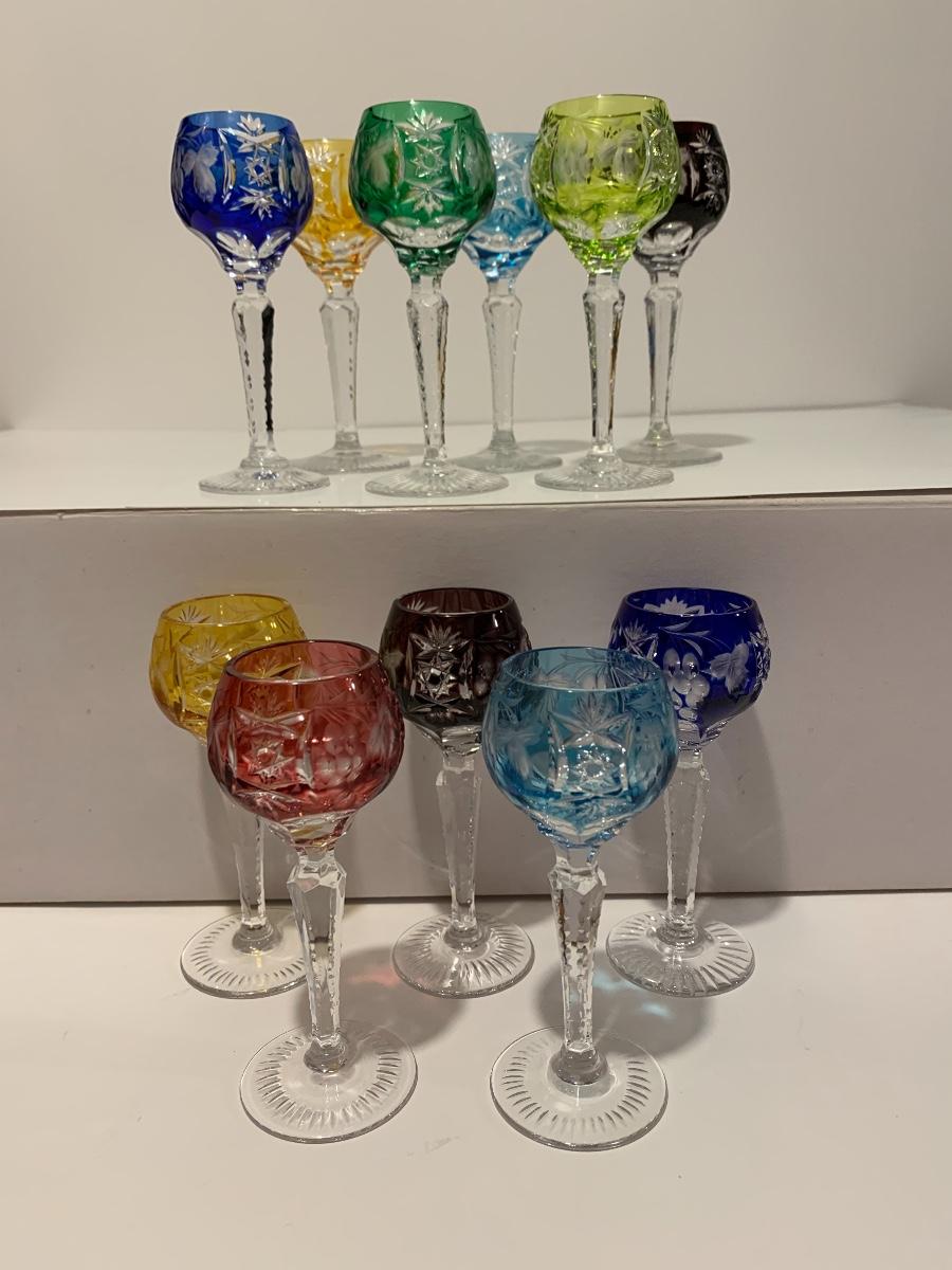 Beautiful set of 11 multicolored cut to clear cordial stemware with notched stems from Germany. Pretty grape and leaves pattern with a crystal-clear base. Just stunning. They have had minimal use if any. The crystal is nice and clear without any residue. Please see all pictures as they are the best representation of the items. The pictures show condition, measurements if taken, and what is included in the lot. Due to the large amount that we photograph and the time frame, we are not always able to take measurements. All items unless noted, are pre-owned and have been used. If you purchased furniture, you must bring help. We do not allow one person to carry large furniture out on their own. Bring help, tools and a truck for the safety of our client’s homes, and your personal safety. Company policy. Thank you.