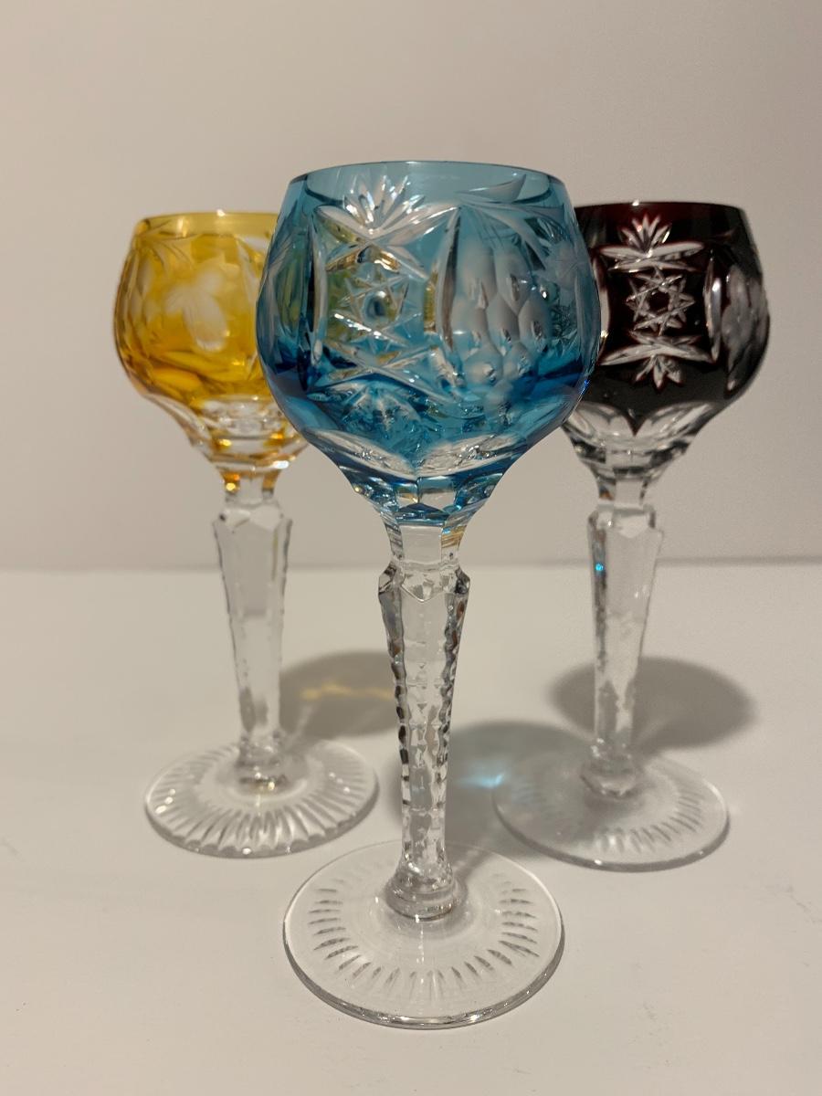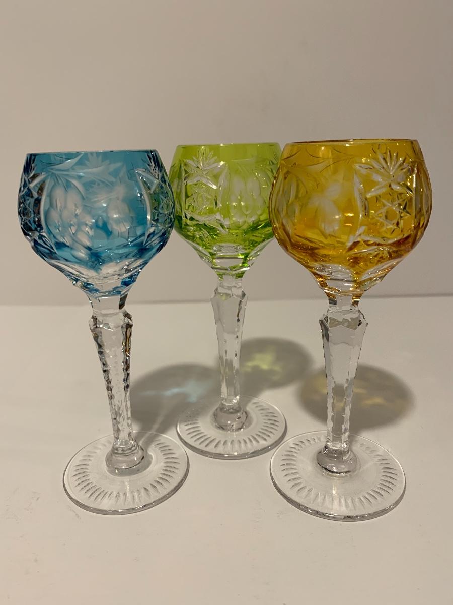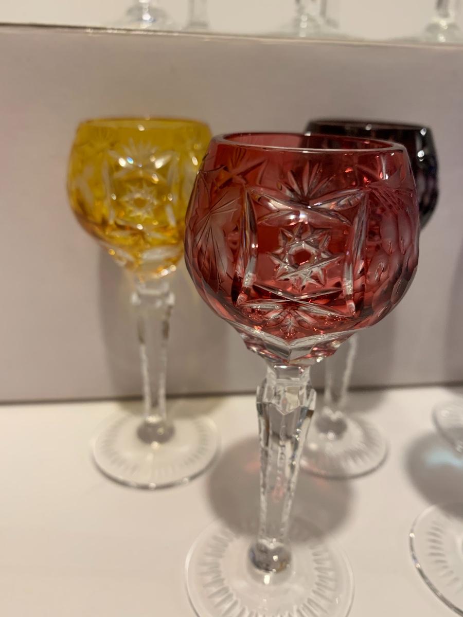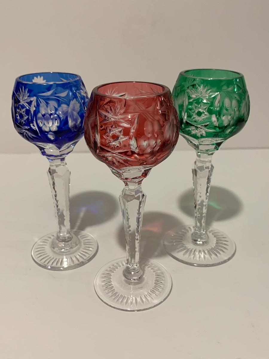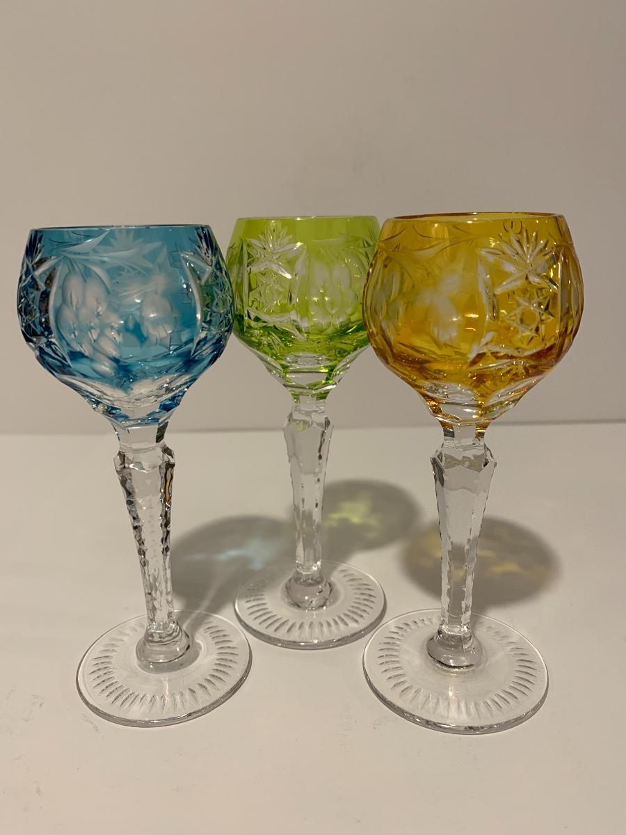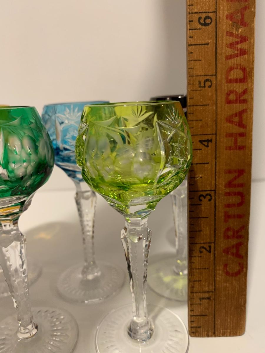 Beautiful set of 11 multicolored cut to clear cordial stemware with notched stems from Germany. Pretty grape and leaves pattern with a crystal-clear base. Just stunning. They have had minimal use if any. The crystal is nice and clear without any residue. Please see all pictures as they are the best representation of the items. The pictures show condition, measurements if taken, and what is included in the lot. Due to the large amount that we photograph and the time frame, we are not always able to take measurements. All items unless noted, are pre-owned and have been used. If you purchased furniture, you must bring help. We do not allow one person to carry large furniture out on their own. Bring help, tools and a truck for the safety of our client’s homes, and your personal safety. Company policy. Thank you.