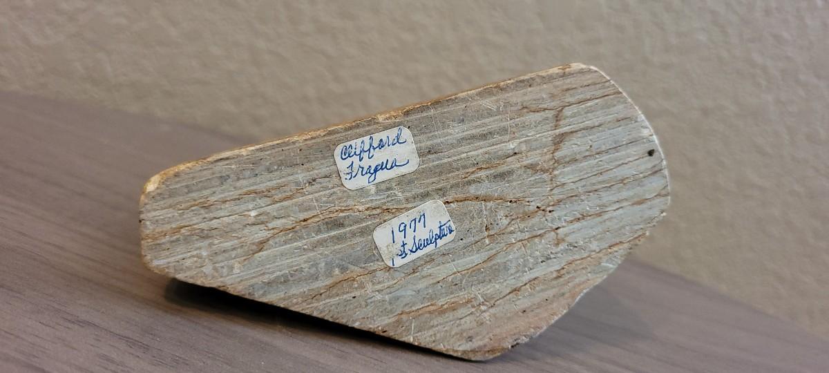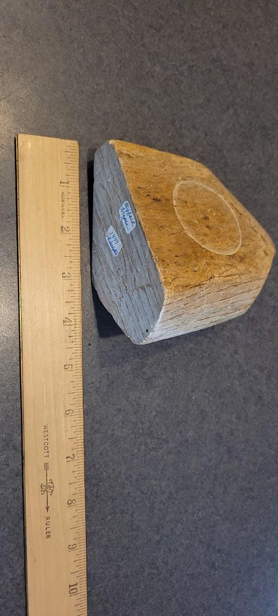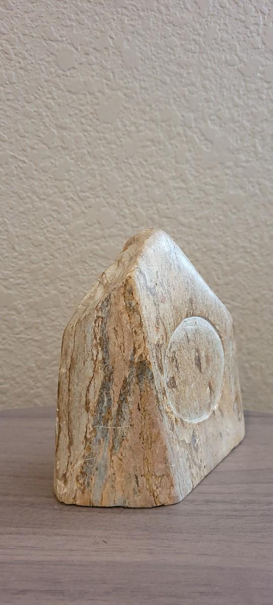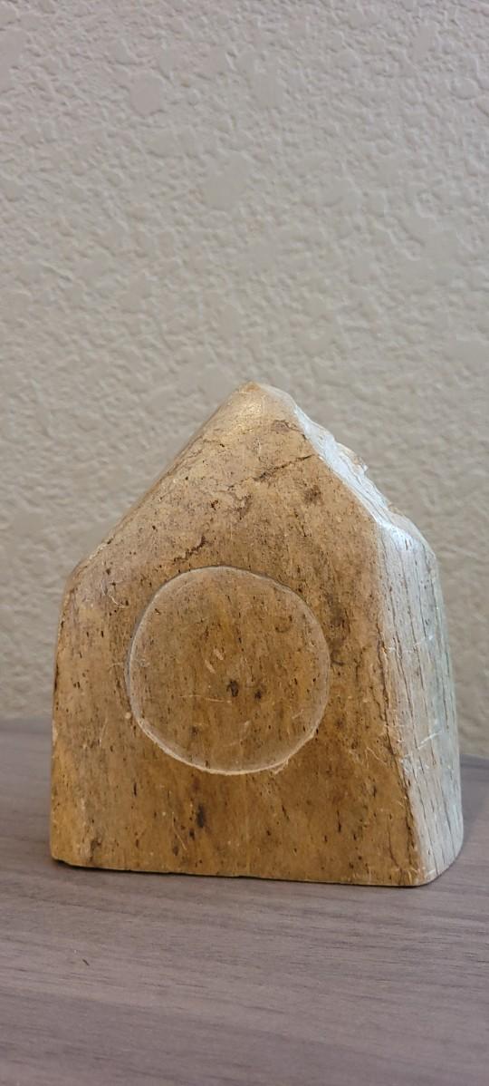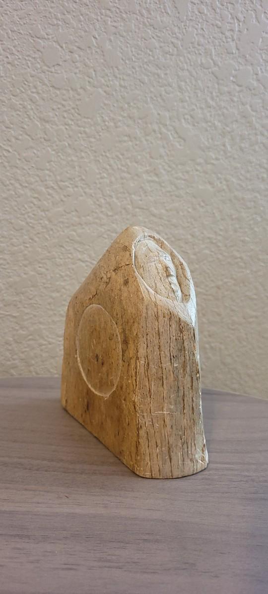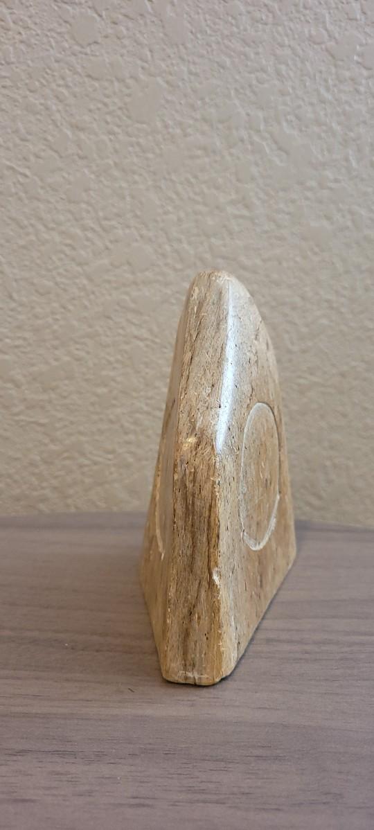 Vintage Handmade Stone Sculpture with Tag on Underside that shows both Date and Name of Artist.