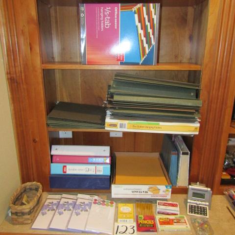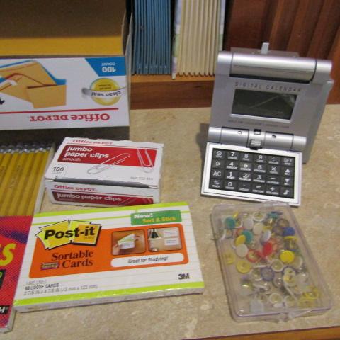 ALL OF YOUR OFFICE NEEDS. FOLDERS, PENCILS, INVITATIONS, POST IT NOTES, PAPER CLIPS, CALCULATOR, BINDERS, CORK BOARD AND MUCH MORE. PLEASE SEE PICTURES FOR FULL DESCRIPTION.