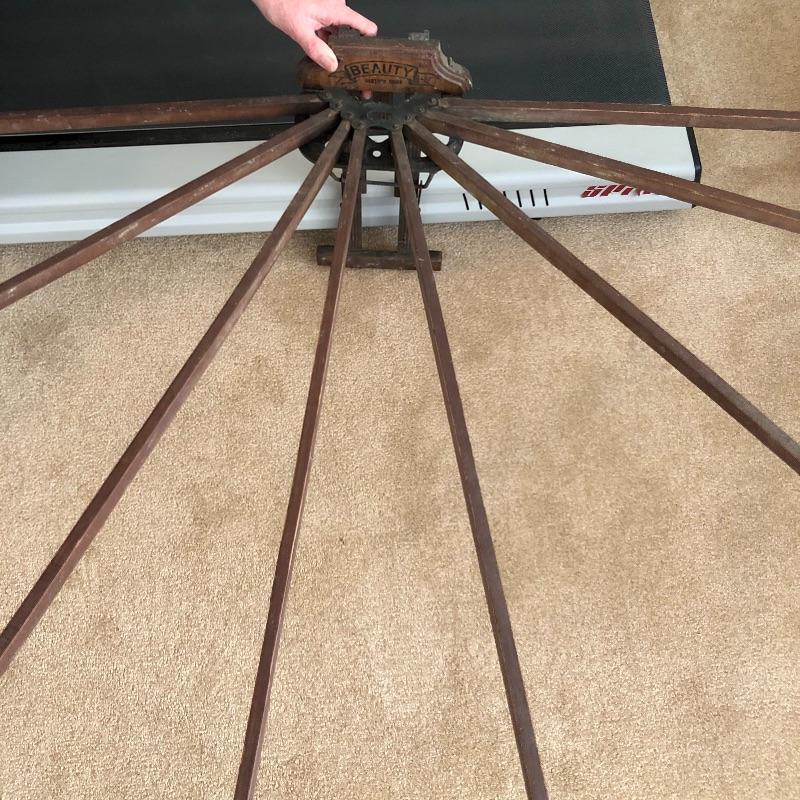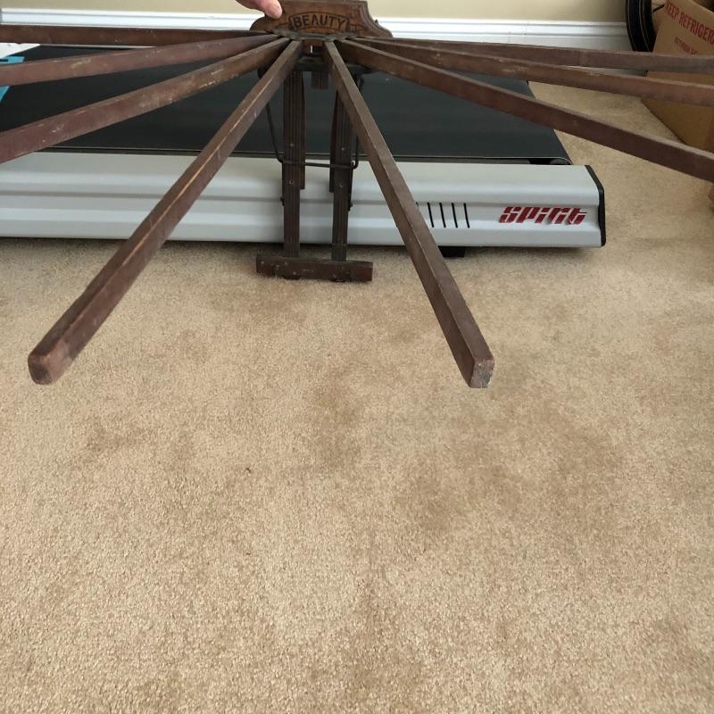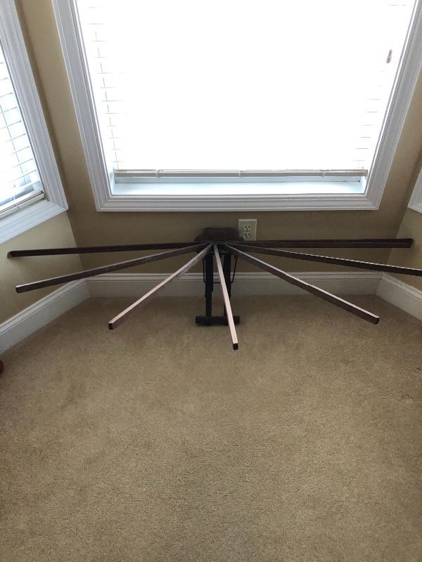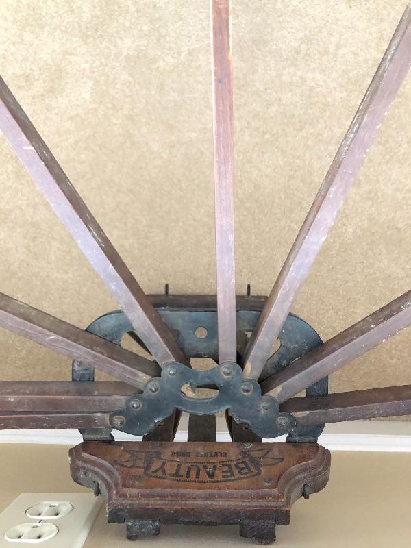 Remember what your clothes smelled like after air drying on the porch on a sunny spring day? This beautiful vintage wood and metal hanging clothes dryer will bring you back to a simpler time. Compact for easy storage when not in use. It measures 57 x 26 x 15 fully extended. Shipping available. Get UPS quote prior to bidding if shipping is needed as the size may be costly. 828-252-6930