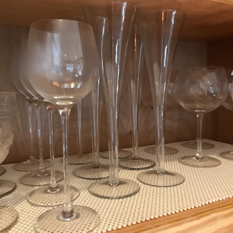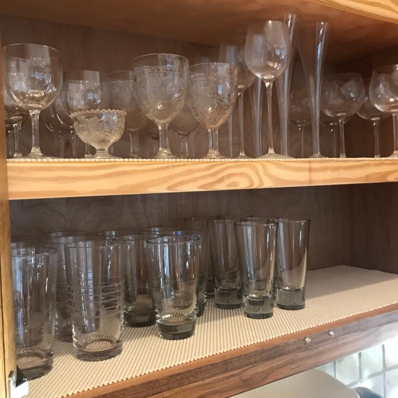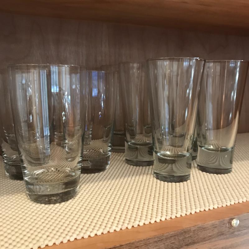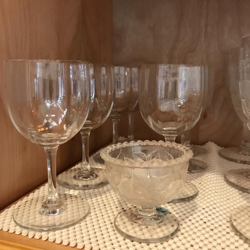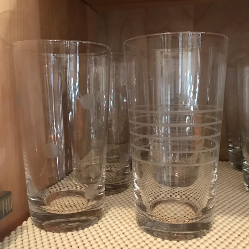 Assorted glassware includes everyday glasses and barware. See photos for details. Shipping or local pick up in Asheville.