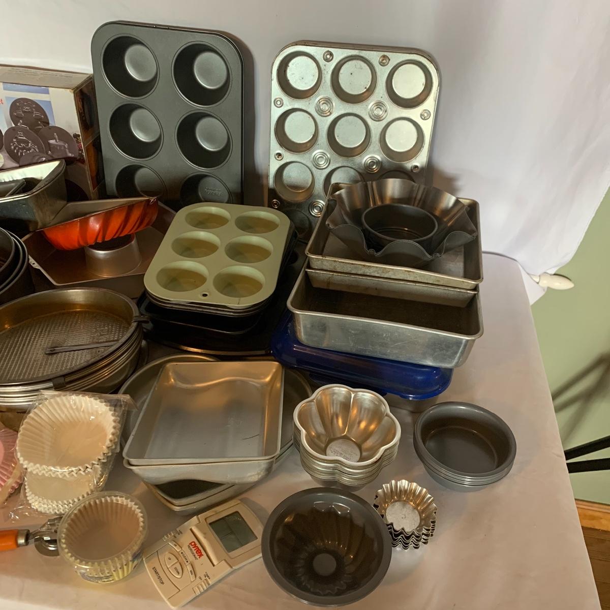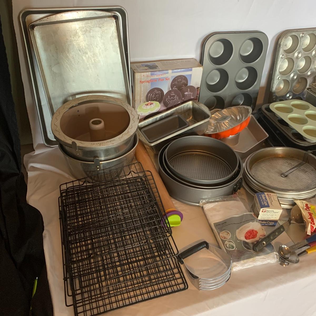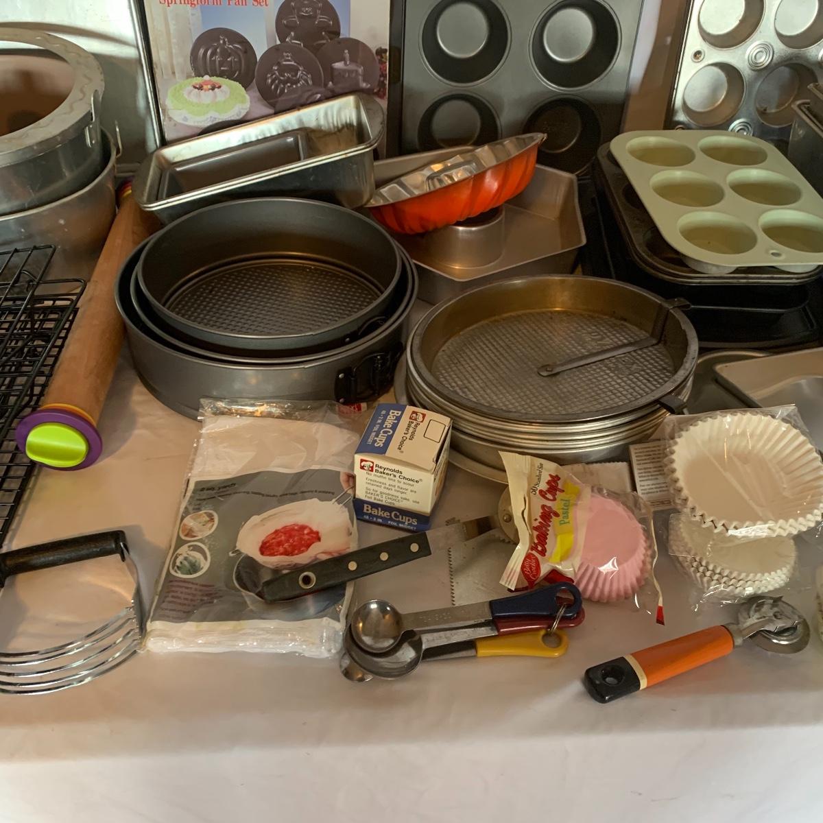 Wow! You Bake? Here ya go. I cannot thinking of anything missing honestly. Spring form pans, pie pan, cake pans, molds, cooling racks, muffin pans of every size. A great wooden Joseph rolling pin, pie guard and so much more. Local pick up only.