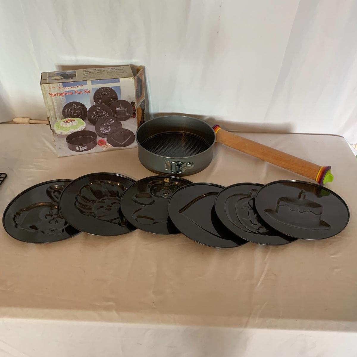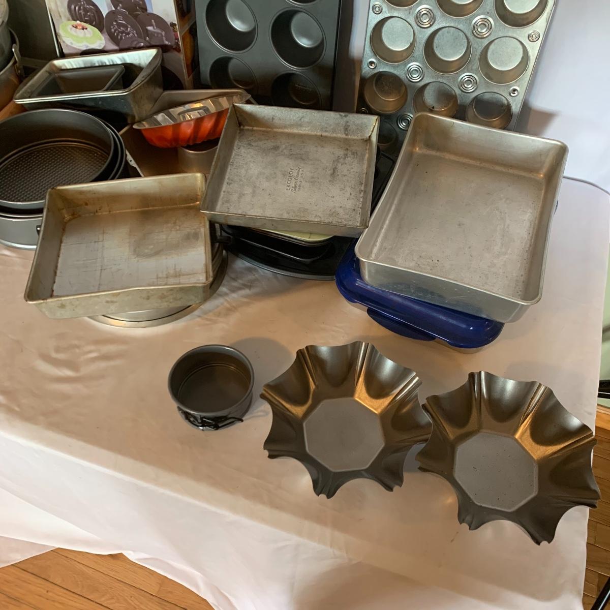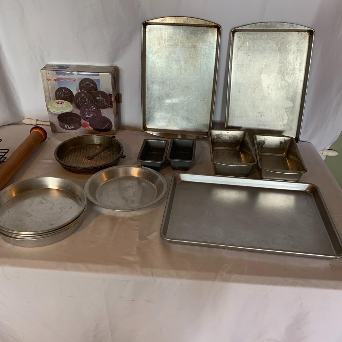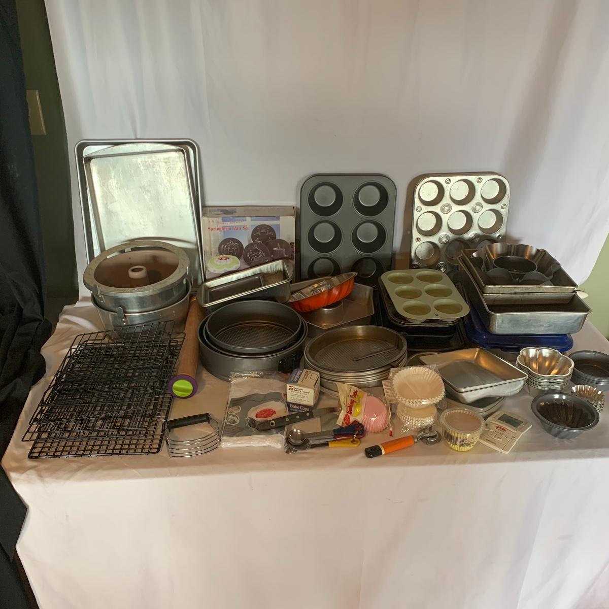 Wow! You Bake? Here ya go. I cannot thinking of anything missing honestly. Spring form pans, pie pan, cake pans, molds, cooling racks, muffin pans of every size. A great wooden Joseph rolling pin, pie guard and so much more. Local pick up only.