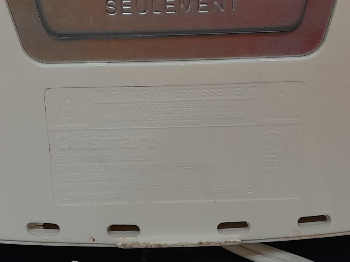 LOT 123 CUSINART AUTOMATIC GRIND AND BREW COFFEE POT WITH WARMER