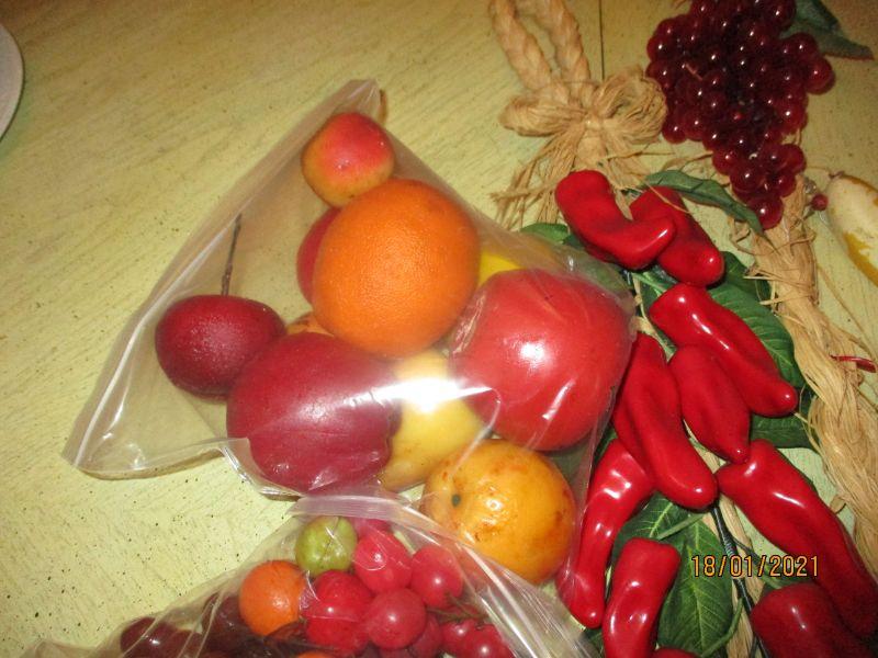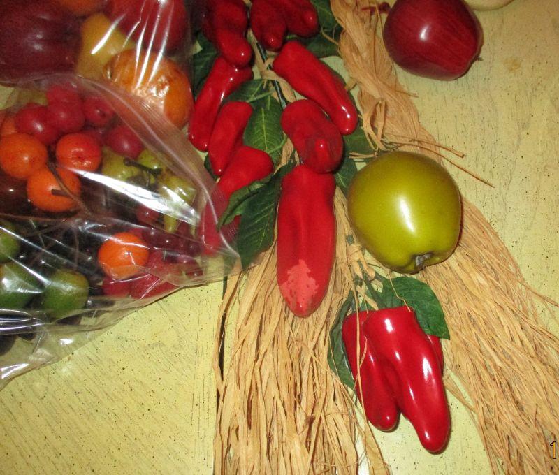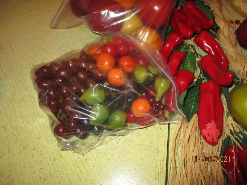 This is a large collection of faux fruits and vegetables. The only issue that I found was significant discoloration to a pepper and a banana.