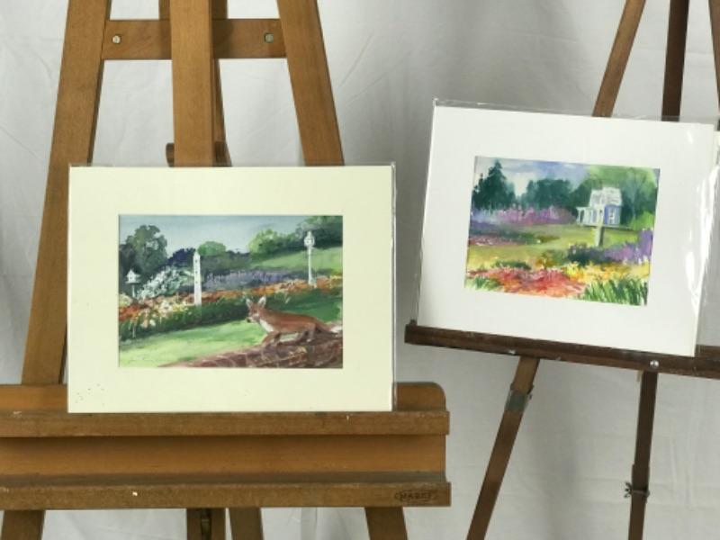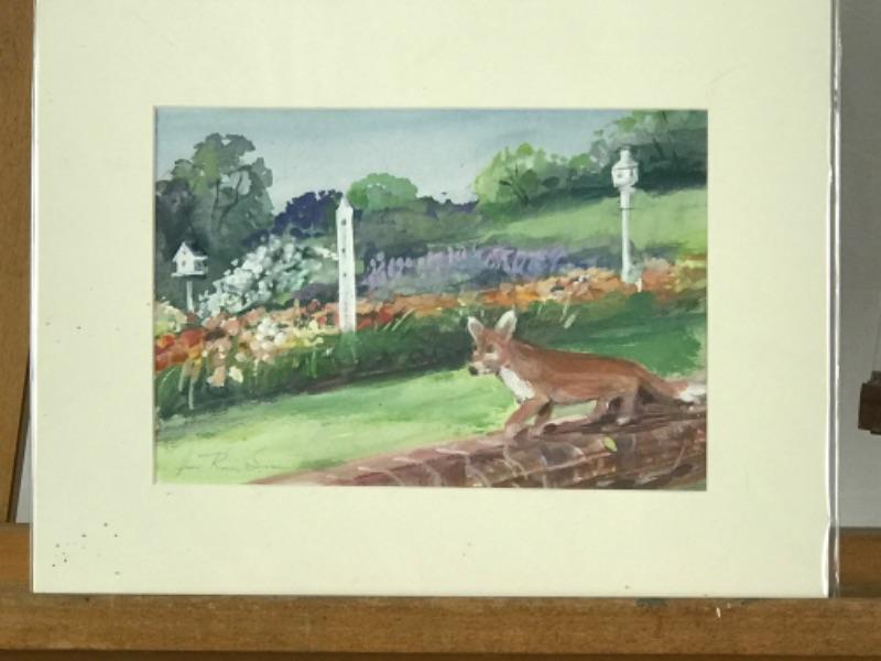 Pair of Jean Ranney Smith Original Watercolors “Fox” measures 14”x11”, “Birdhouse “ measures12”x10”